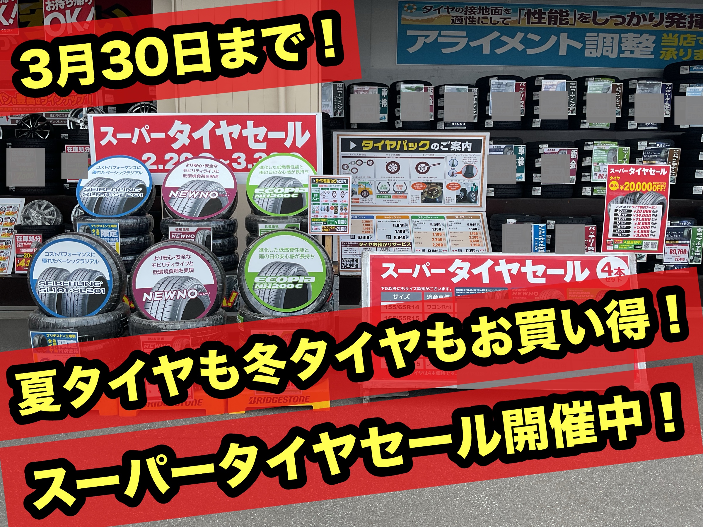 明日まで!ブリヂストンタイヤをお得に買える!スーパータイヤセール開催中!!