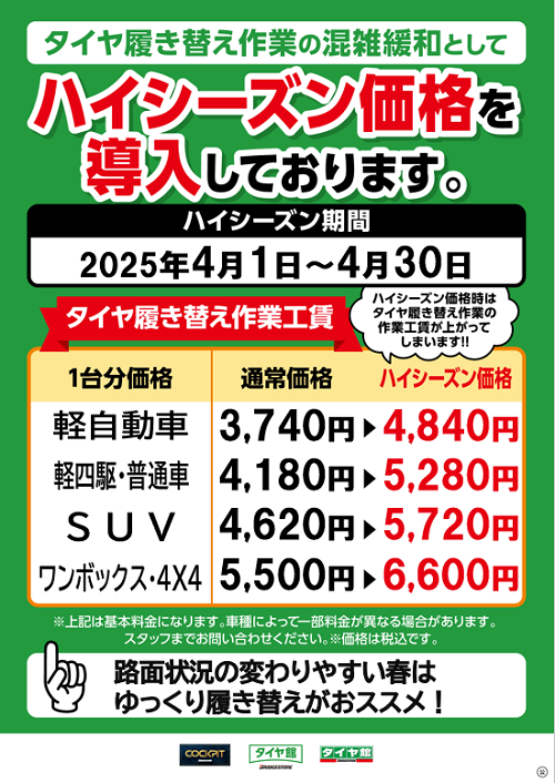【重要】タイヤ履き替え(脱着)に関するお知らせ