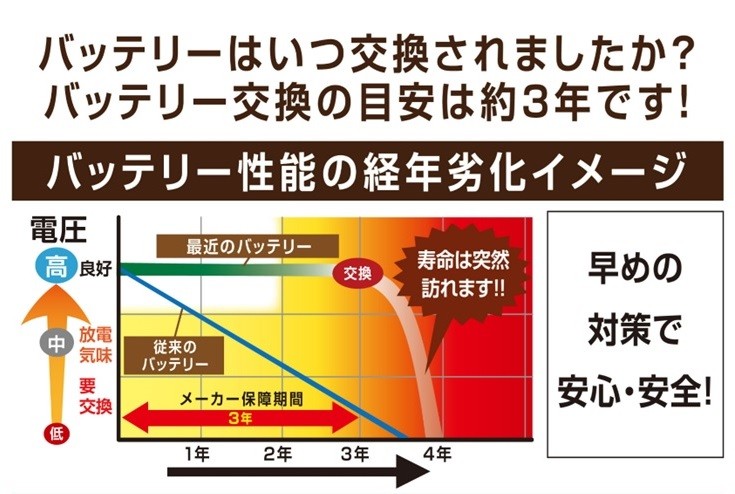 また、バッテリーは「定期交換部品」であることが意外と知られておりません。