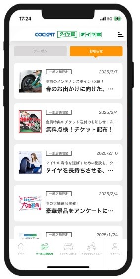 コクピット・タイヤ館アプリがよりお得で便利に進化しました!