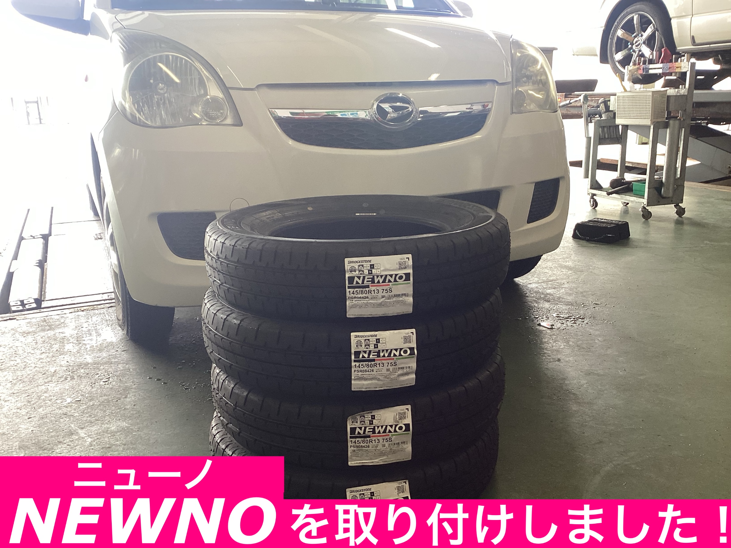 本日は、ミライースにNEWNO 145/80R13のタイヤを取り付けです。