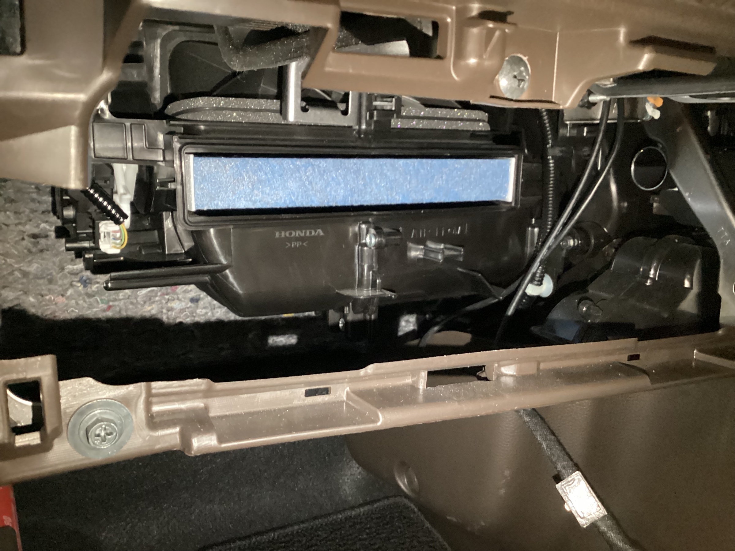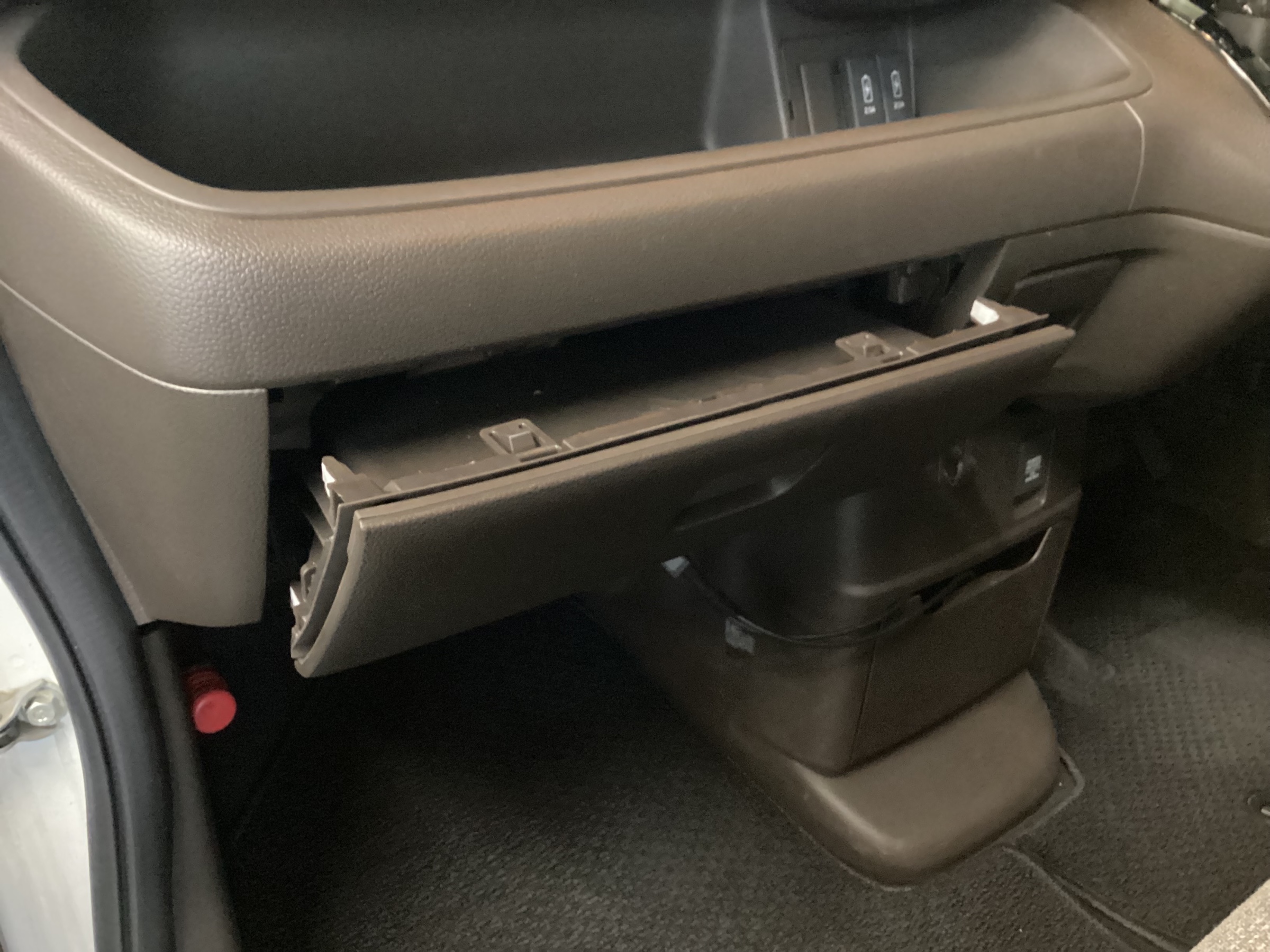 爪(フック)に気をつけてグローブボックスを外しましょう。