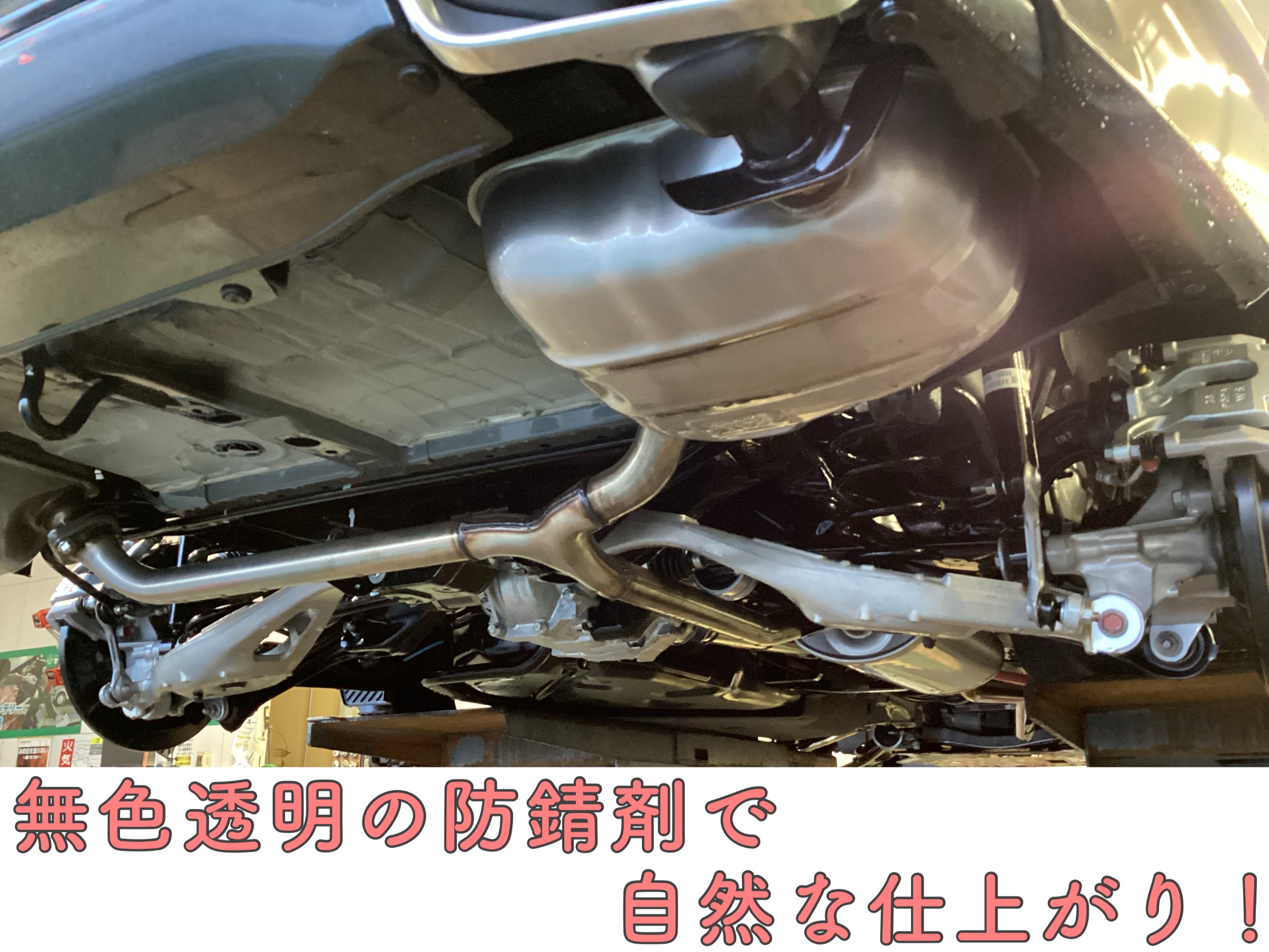 タイヤ館の防錆剤は無色透明のため、純正の見た目を損なわず、自然な仕上がりで大変人気のメニューです٩( 'ω' )و