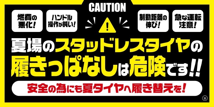 安心・安全のためにも夏は夏タイヤ・冬はスタッドレスタイヤと季節に合わせたタイヤを装着しましょう!