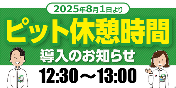 また、8月1日より、12時30分~13時まで【ピット休憩時間】を設けさせていただく事となりました。