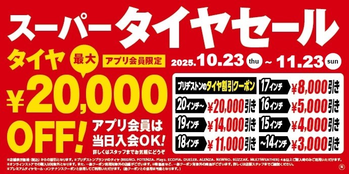 【クーポン配信中】スーパータイヤセール好評開催中!
