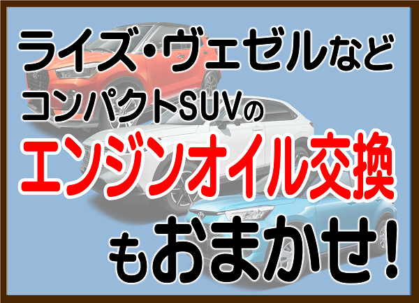ライズ・ヴェゼルなどコンパクトSUVのエンジンオイル交換もおまかせ!
