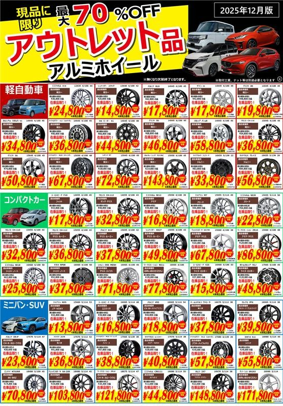 腐食に強いアルミホイール!などもございますので、タイヤ購入時ホイールの点検もオススメしております!