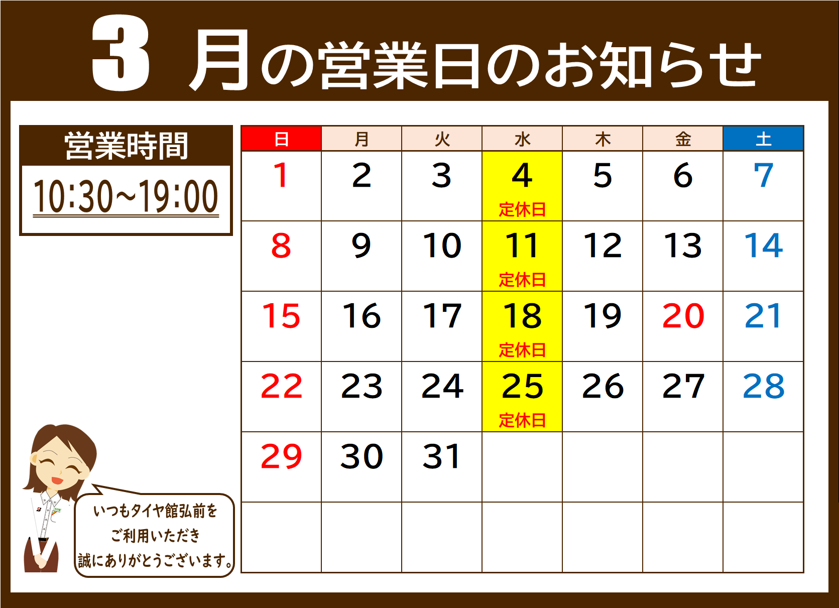 3月もタイヤ館弘前をよろしくお願い致します!
