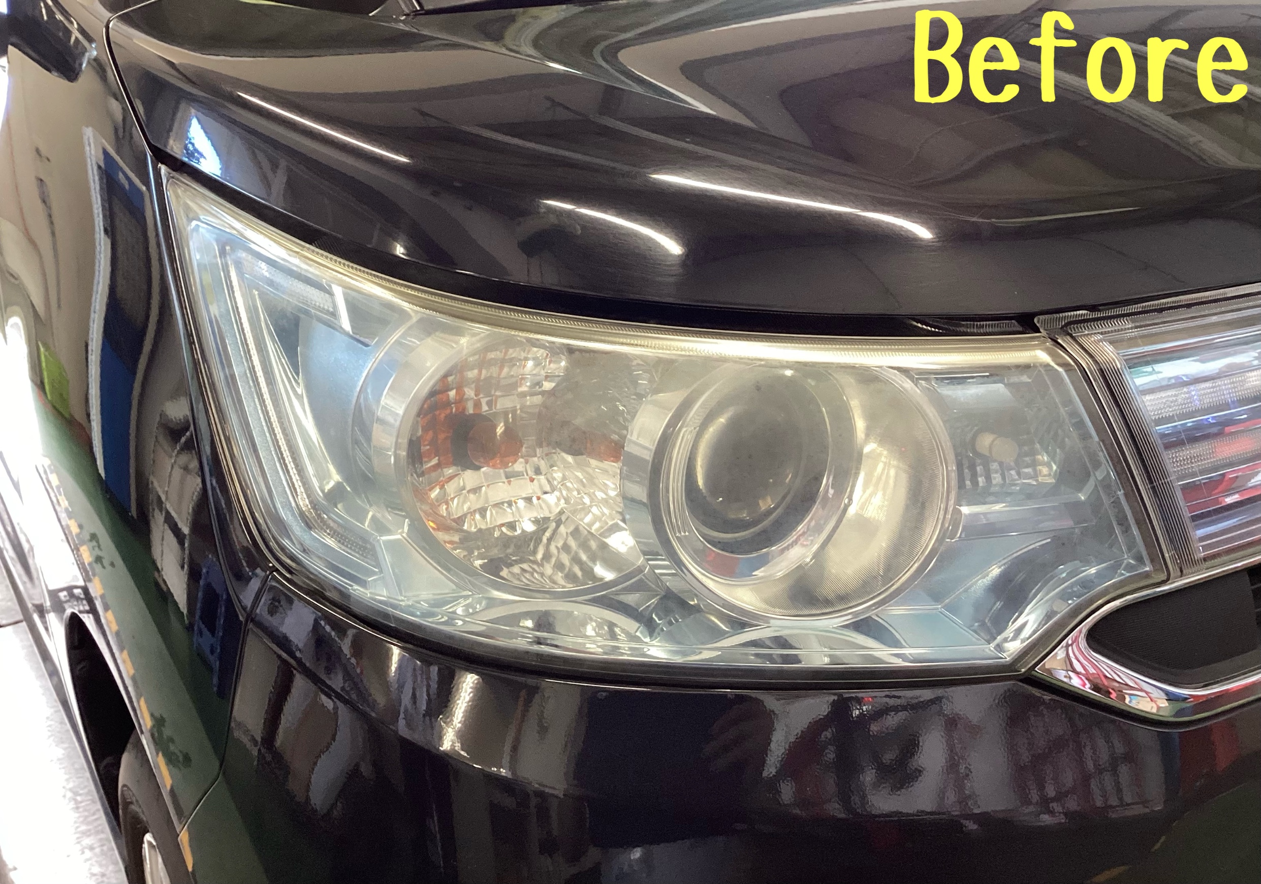 今回のお客様のお車は、軽度のくすみでしたので新品同様の輝きになりましたが、ヘッドライトの状態やくすみ、黄ばみ具合によっては取りきれないものもございますので、予めご了承ください。