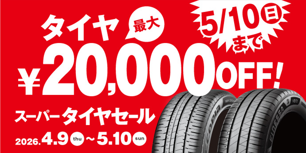 タイヤ最大20,000円引き!スーパータイヤセール開催中!