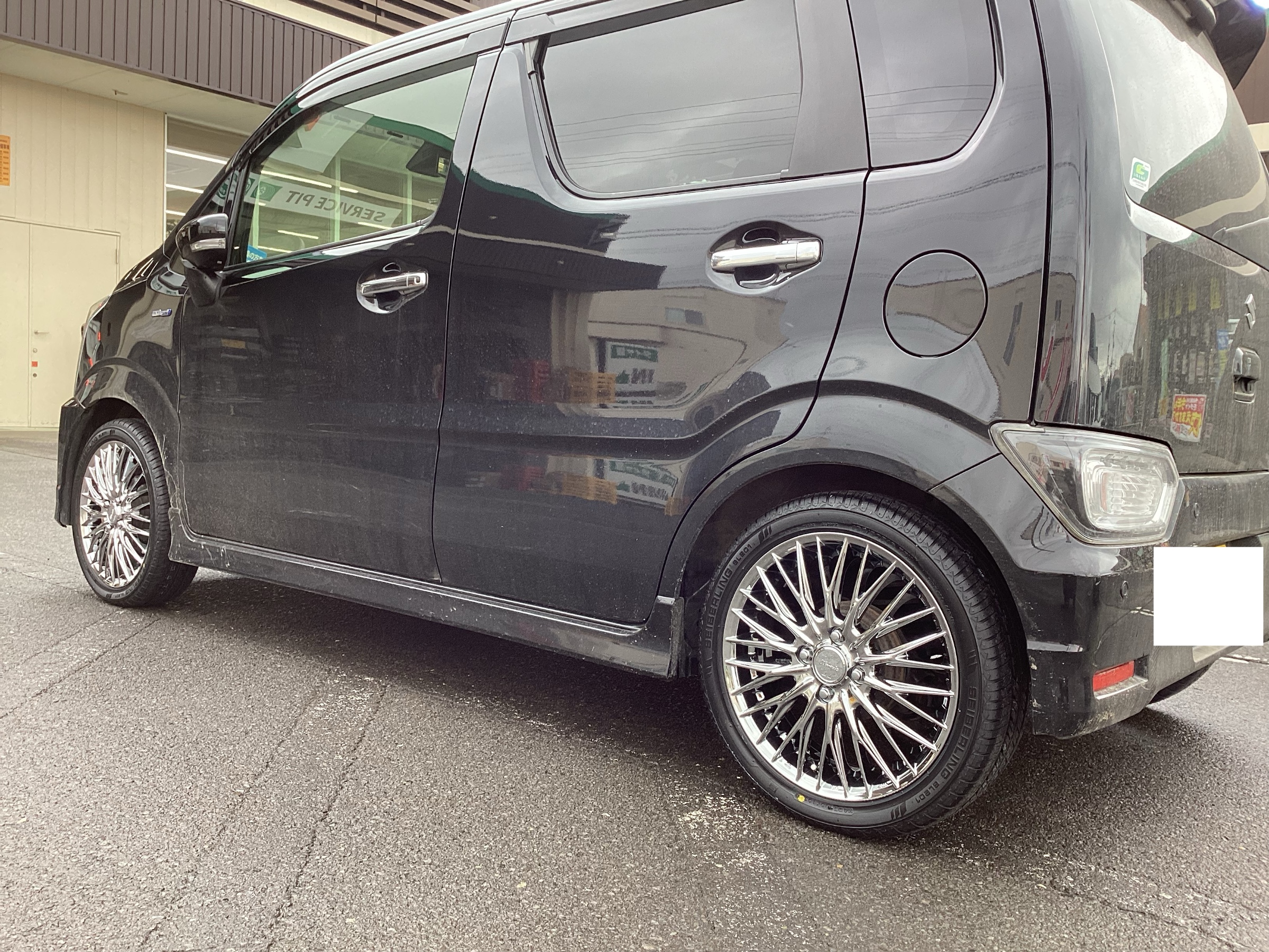 本日はこの前紹介したホイールセットをワゴンRスティングレーに装着しました。
