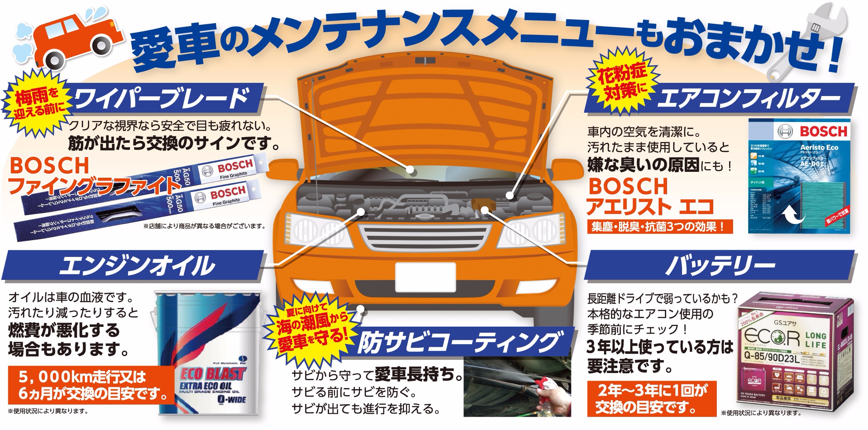 ただいま行楽前のメンテナンスフェア開催中です!