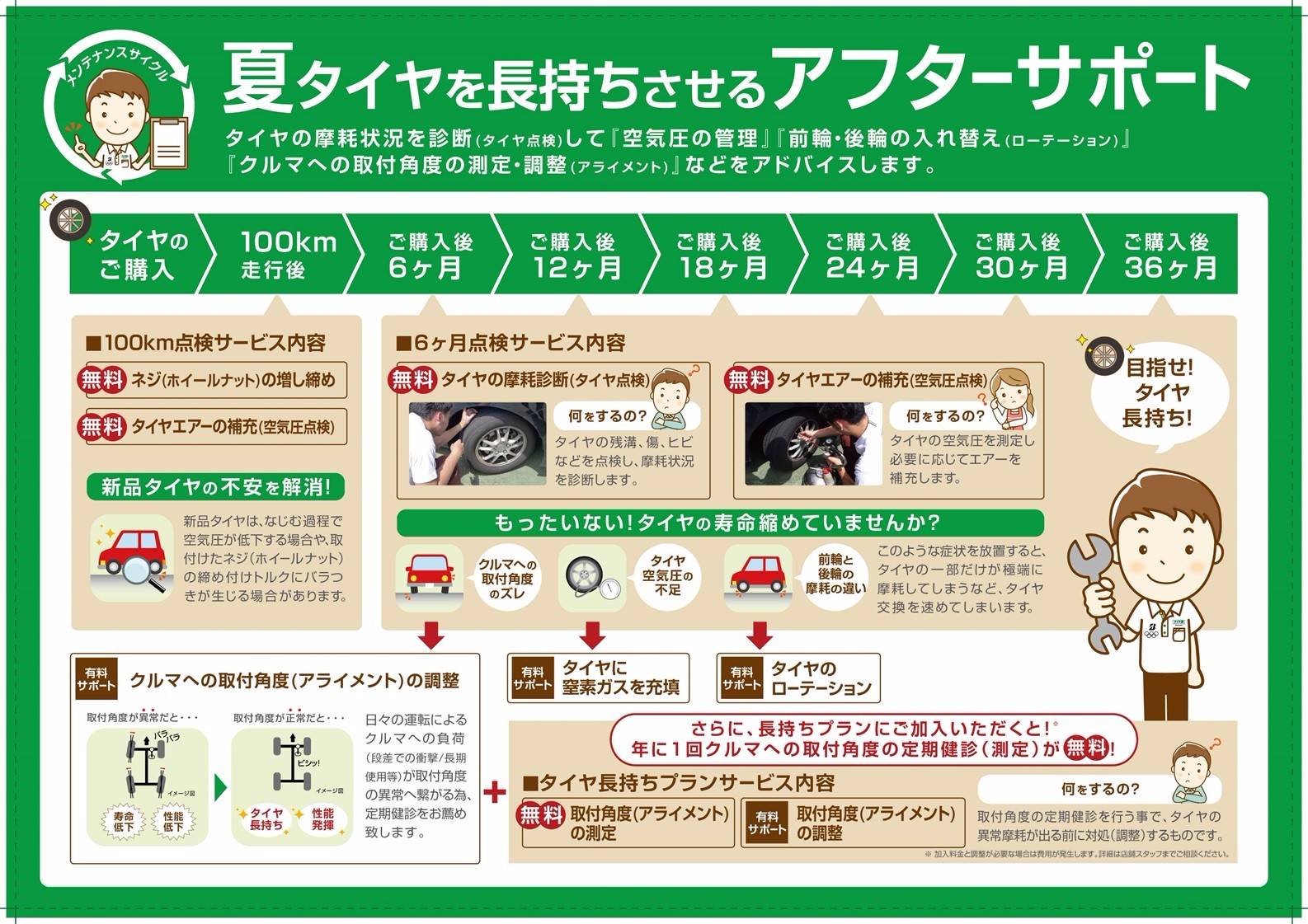 せっかくご購入いただいたタイヤをより長く、安全・安心・快適にお使いいただくためには
