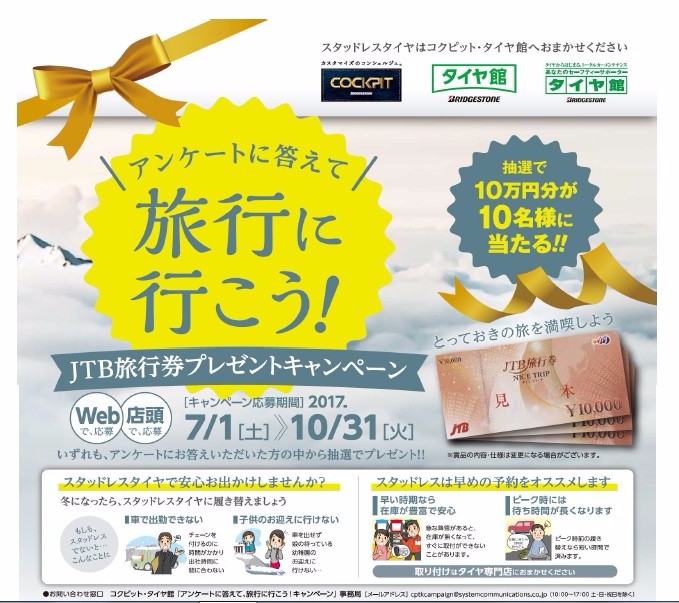 ニュースその③ アンケートに答えるだけで、抽選で10万円分の旅行券が当たるキャンペーン実施中!