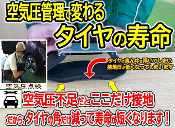 記事一覧 定期的な空気補充が大事です! いつもタイヤ館弘前のホームページをご覧頂き誠にありがとうございます! 今日は空気圧の重要性の豆知識です。 タイヤの空気圧が適正でないとタイヤの寿命は大きく変わります。 写真をご覧になると分かると思いますが、空気圧が低いと、タイヤの外側が強く接地し、 タイヤの真ん中は浮いてしまって... 2026年4月17日 ポスト