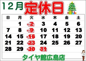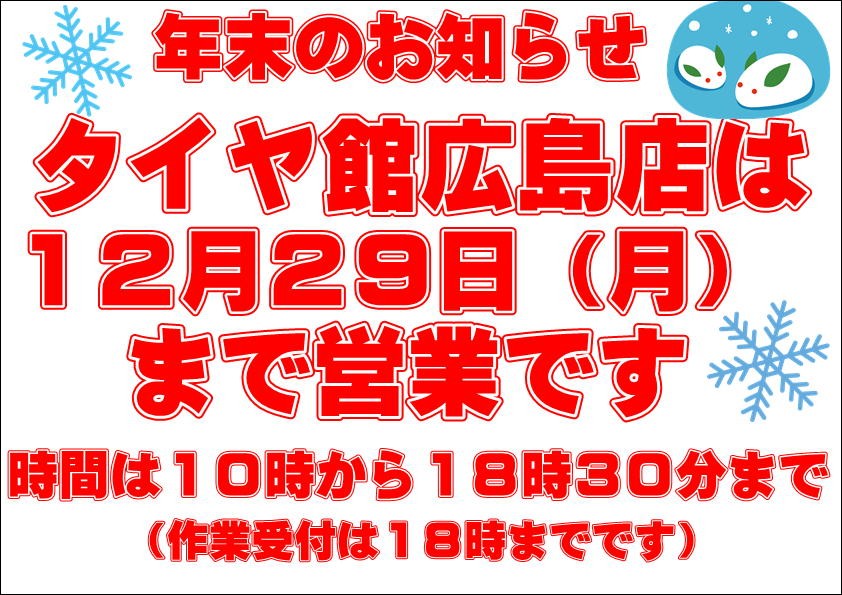 タイヤ館広島店は12月29日(月)で改装の為、一旦閉店致します