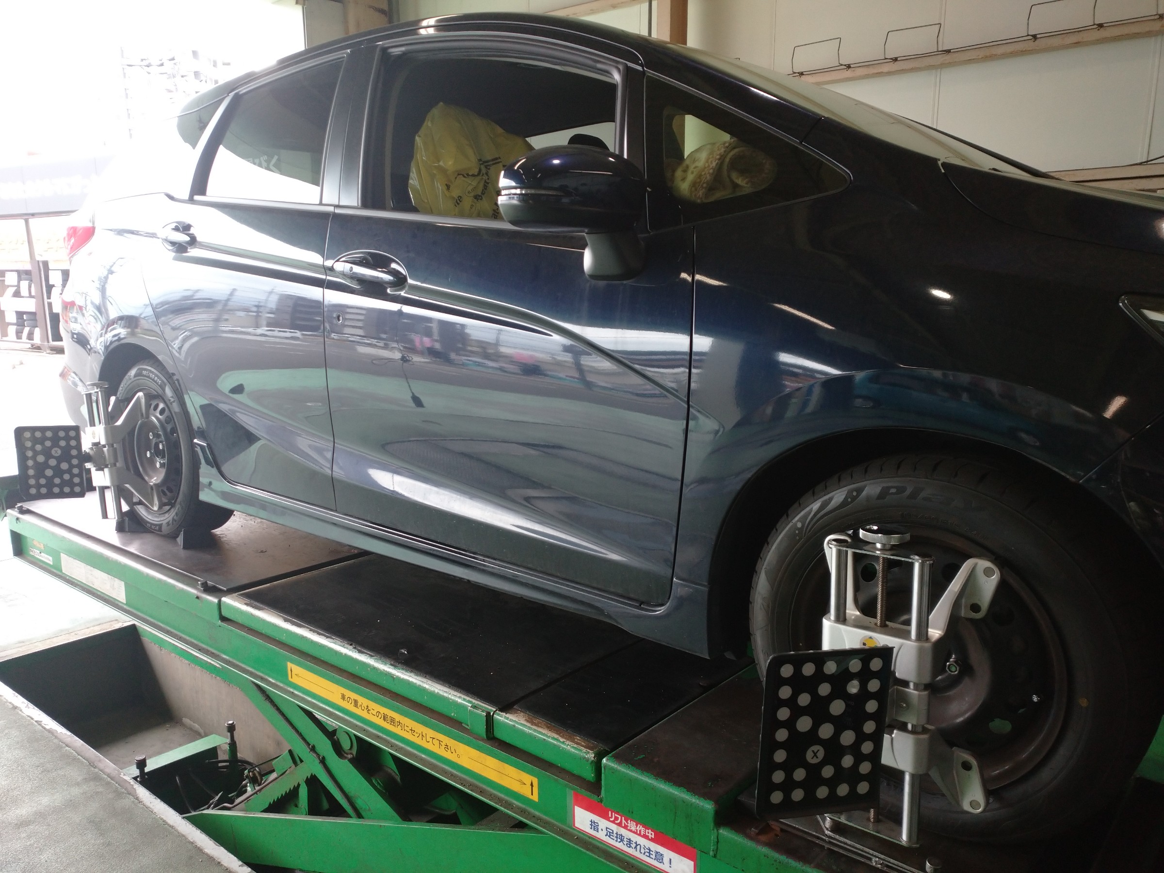 お車の足回りの向きを、お車ごとに決められた数値に合わせ、ハンドリングを良くしたり、タイヤの編摩耗を抑える作業の事です!