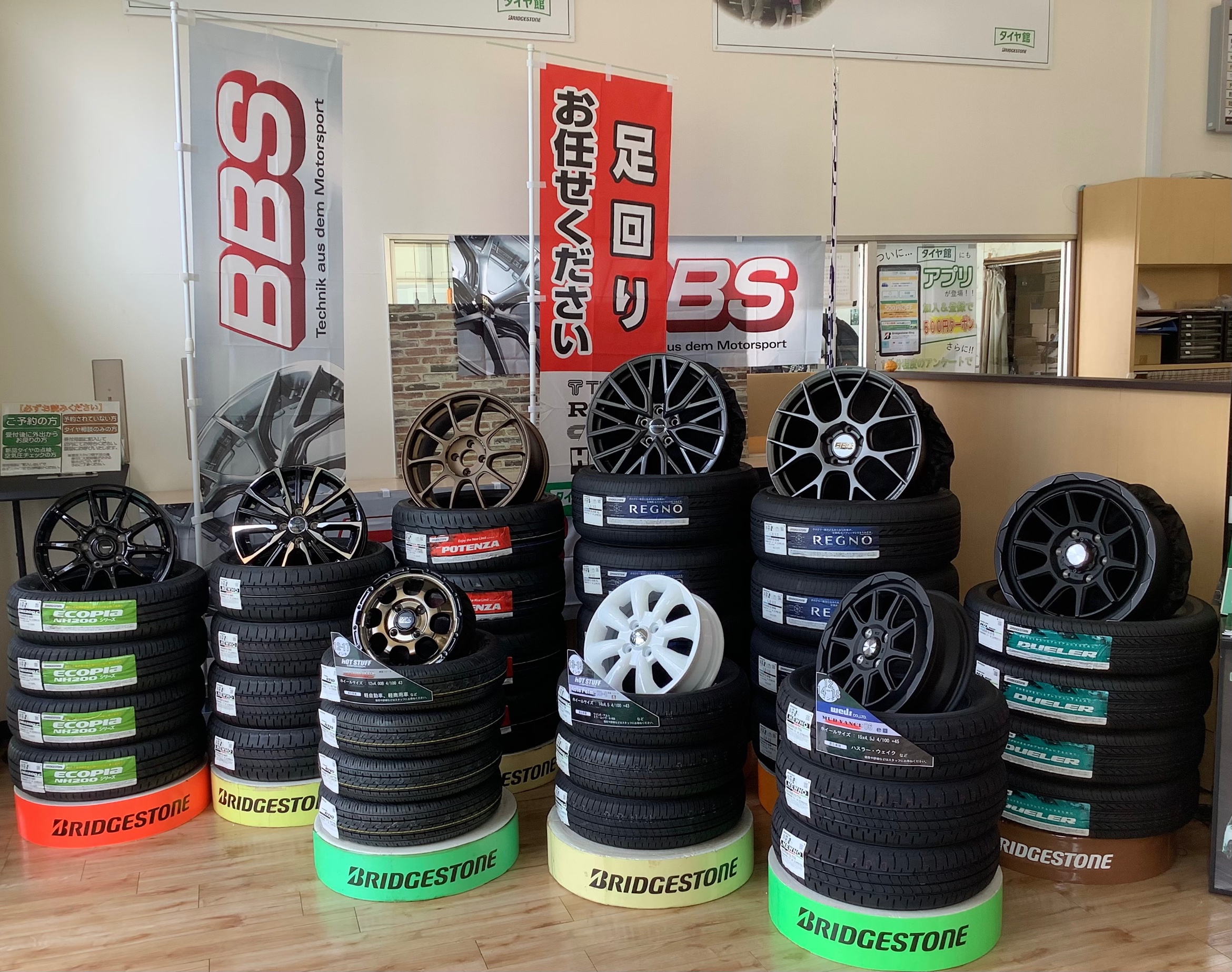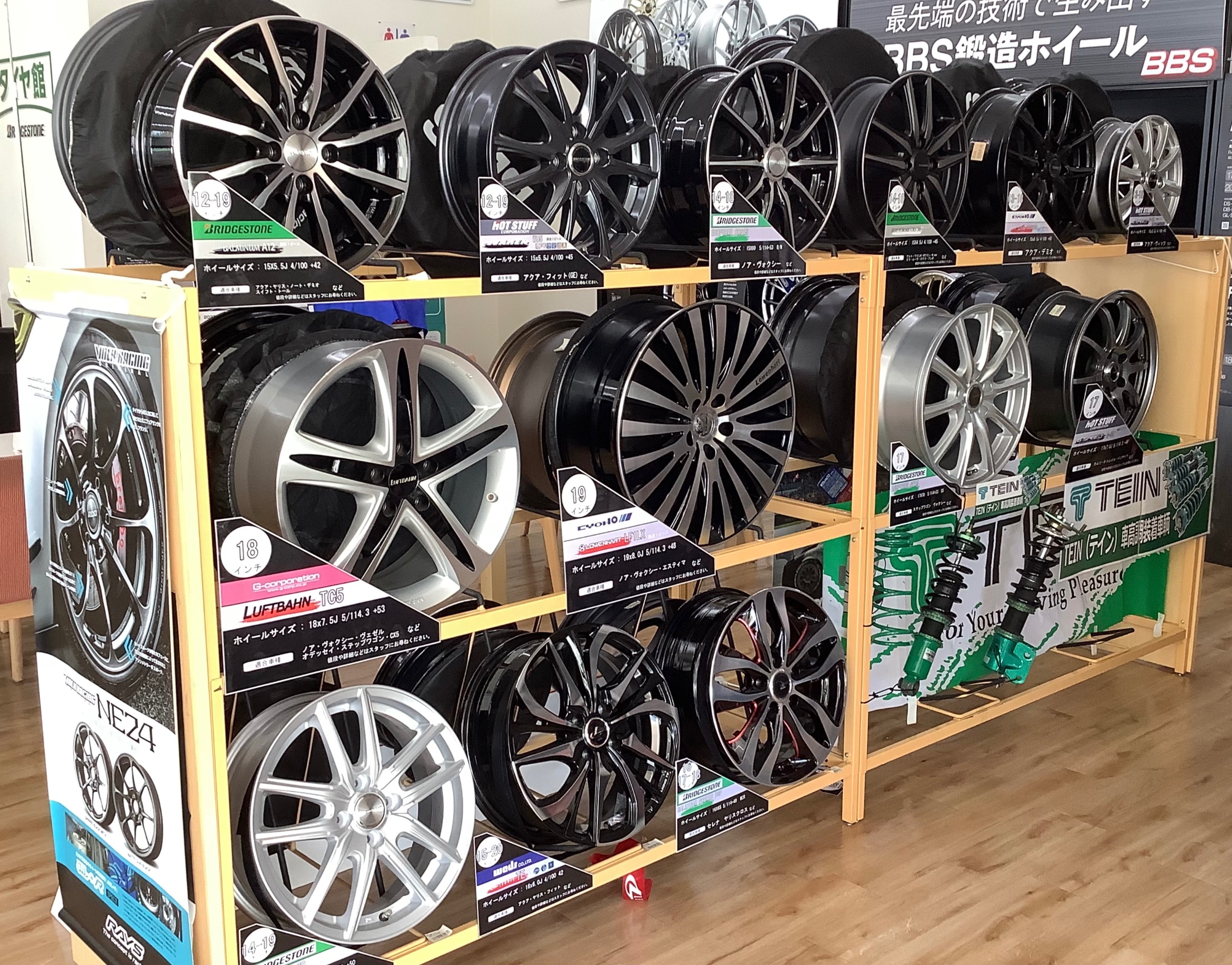 タイヤ館広島店はアルミホイールを多数展示しています