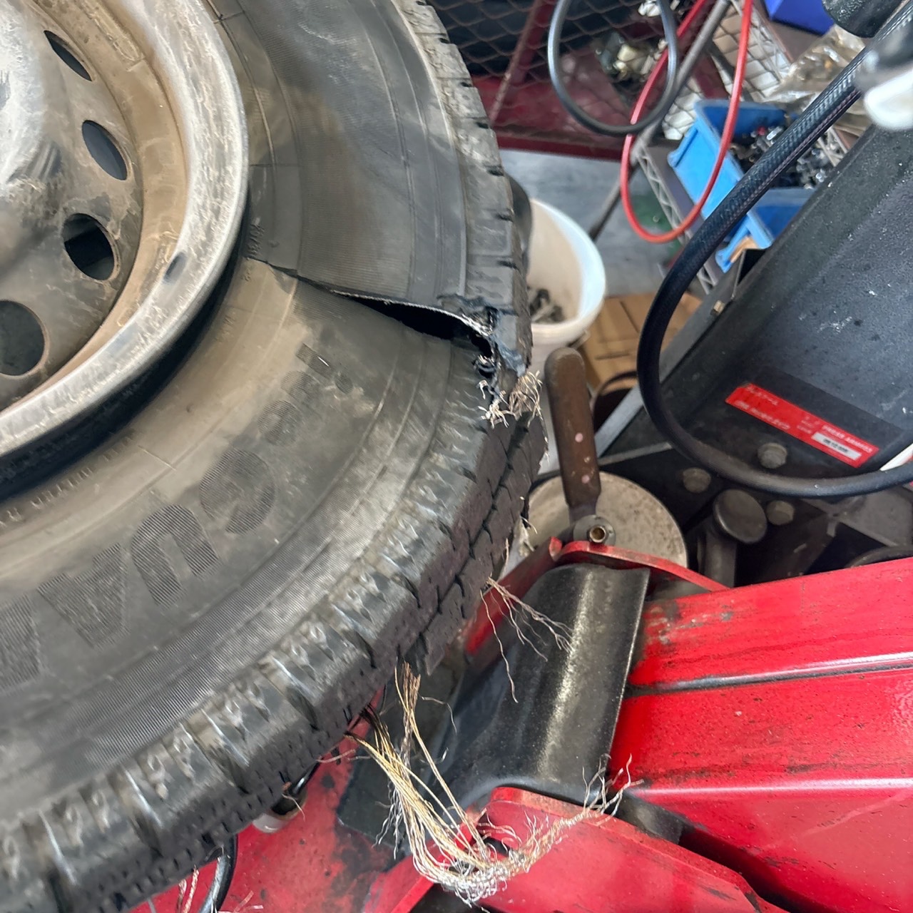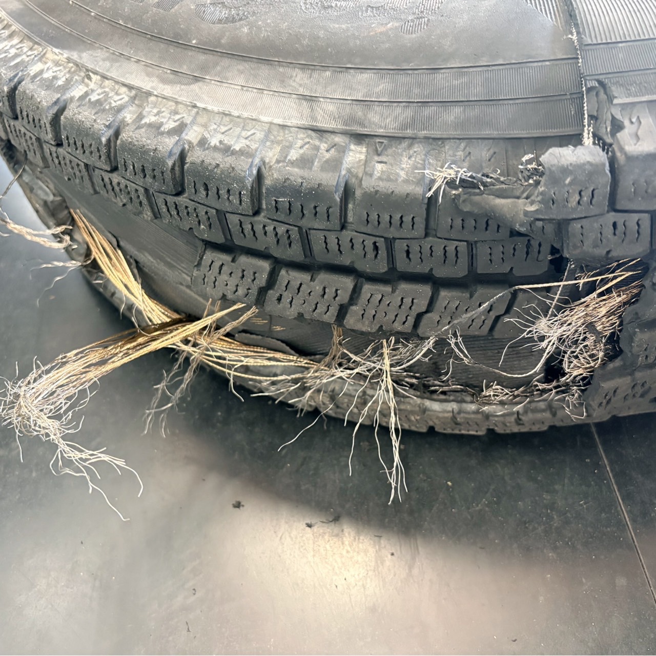 その原因は....「バースト」してタイヤが潰れてしまった