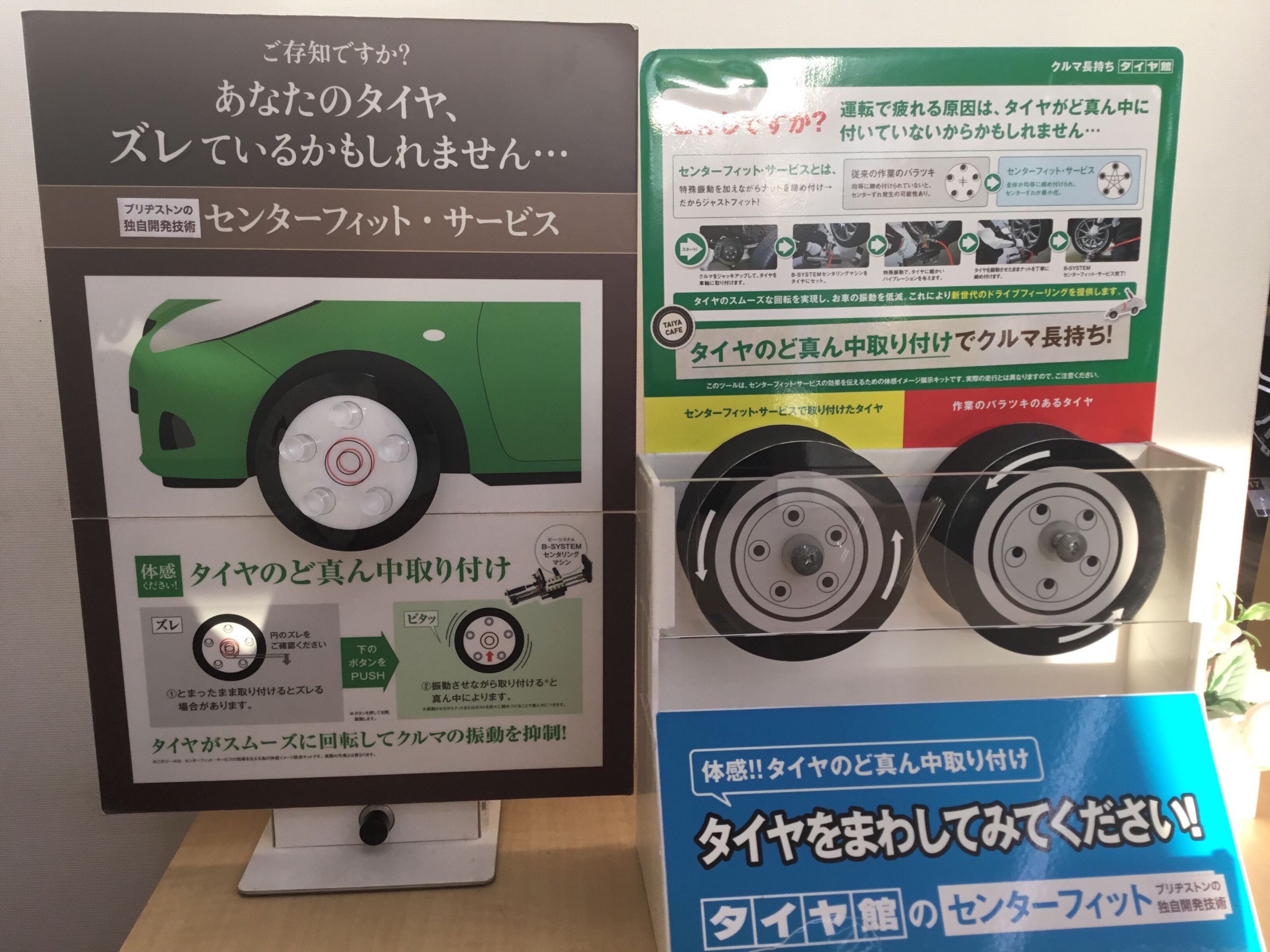 センターフィット ポスト 特に運転で疲れやすい方へ... その疲れ、もしかしてタイヤが真ん中に付いていないからかもしれません! タイヤ館の「センターフィット」をご存じですか? タイヤの取り付け時に『B-SYSTEMセンタリングマシン』という機材で 特殊振動を与えながらタイヤを取り付けることにより、センターズレが最小化。 結果、タイヤのスムーズな回転を実現しお車の振動を低減することができ、 運転疲れを軽減。『新世代のドライブフィーリング』を体感いただけます! 心当たりのある方は是非お試しください! カテゴリ:商品情報 その他商品・サービス