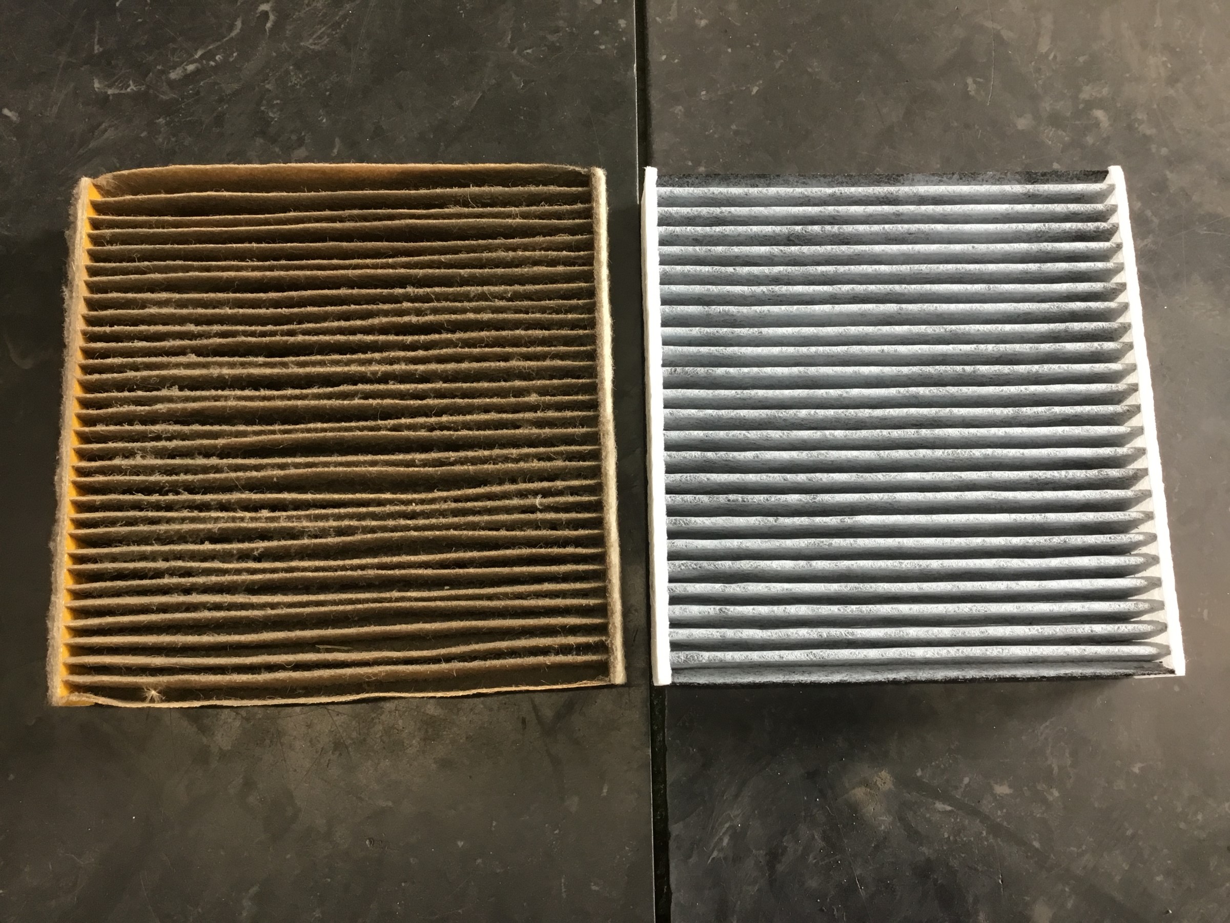 左のエアコンフィルターがいかに汚いかが分かる写真になっています。