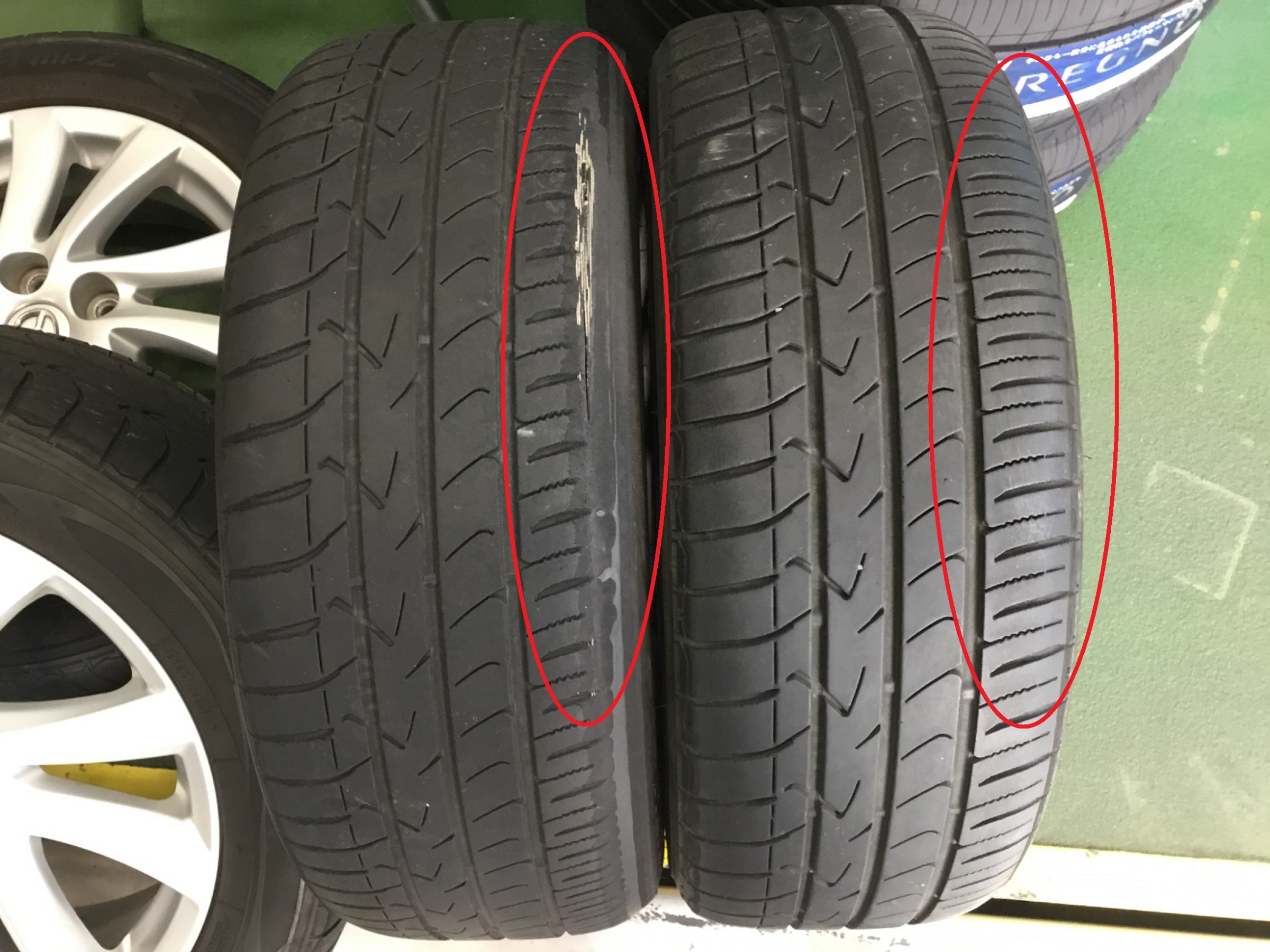 左のタイヤの減り方がかなりおかしいのが分かりますね
