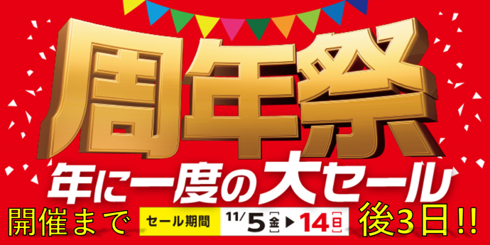 周年祭まであと3日♪ ポスト 2021年11月2日 皆様こんにちは(^^) タイヤ館広島祇園店の相田です♪ ついに待ちに待った周年祭まで あと3日となりました! 準備も着々と進んでいます(^^♪ 当店でタイヤ4本(20,000円以上)ご購入のお客様限定で 抽選の上、素敵な景品をプレゼント! 年に一度の大セール ぜひご期待くださいませ! 担当:相田