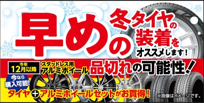 今年は12月以降スタッドレス用アルミホイール品切れの可能性がございます!