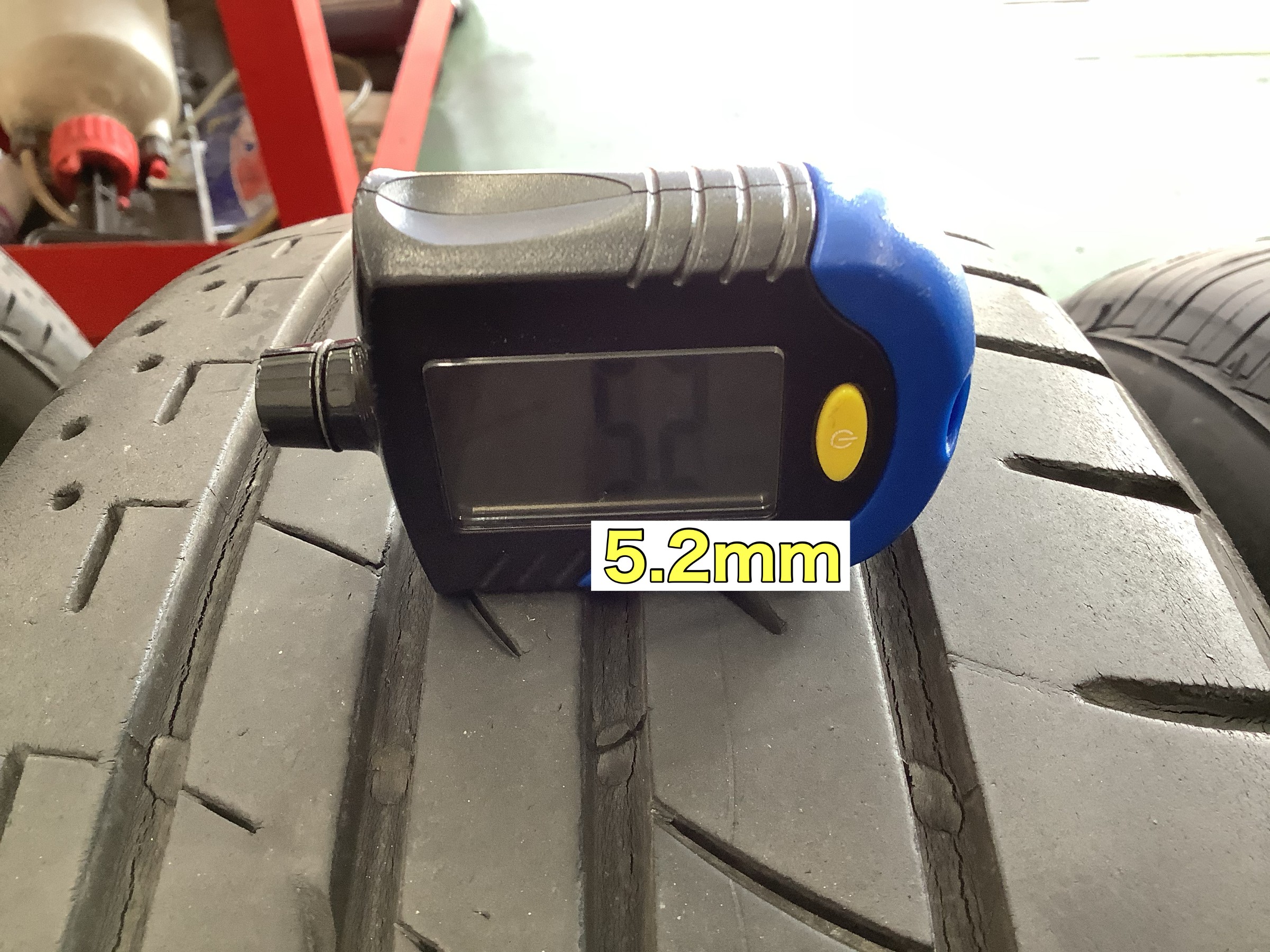 このタイヤの残り溝は5.2mmです
