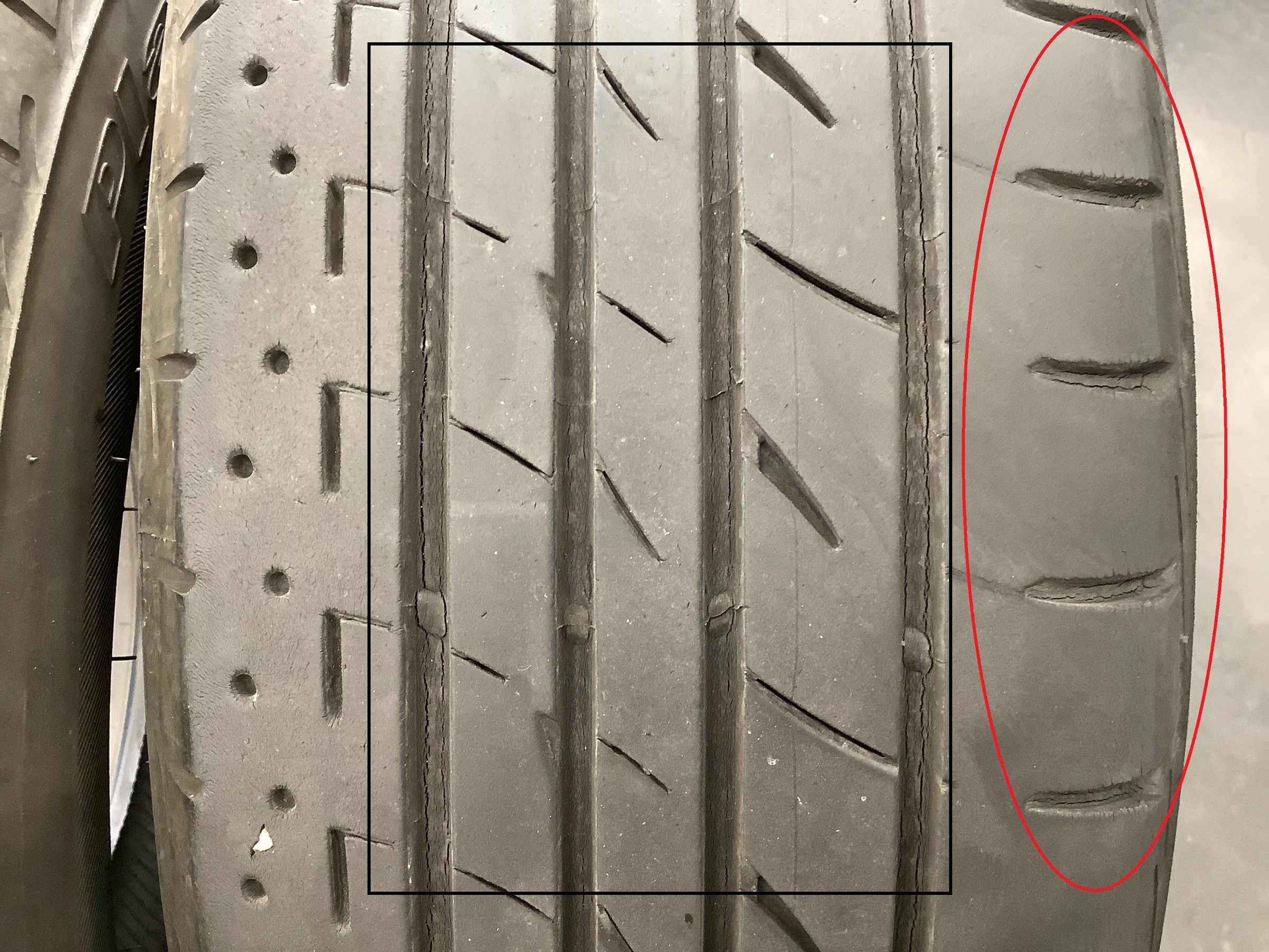 タイヤの縦溝にヒビがかなり出ています