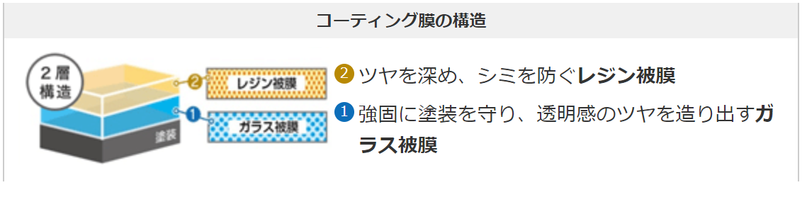塗装のミクロの凸凹に根を下ろしている部分と一定のガラス被膜が、