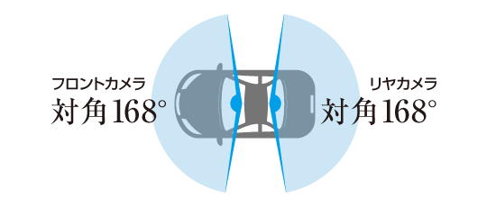 (対角168°の超広角レンズを採用。今まで見えなかった車両前方左右の広い範囲を記録)