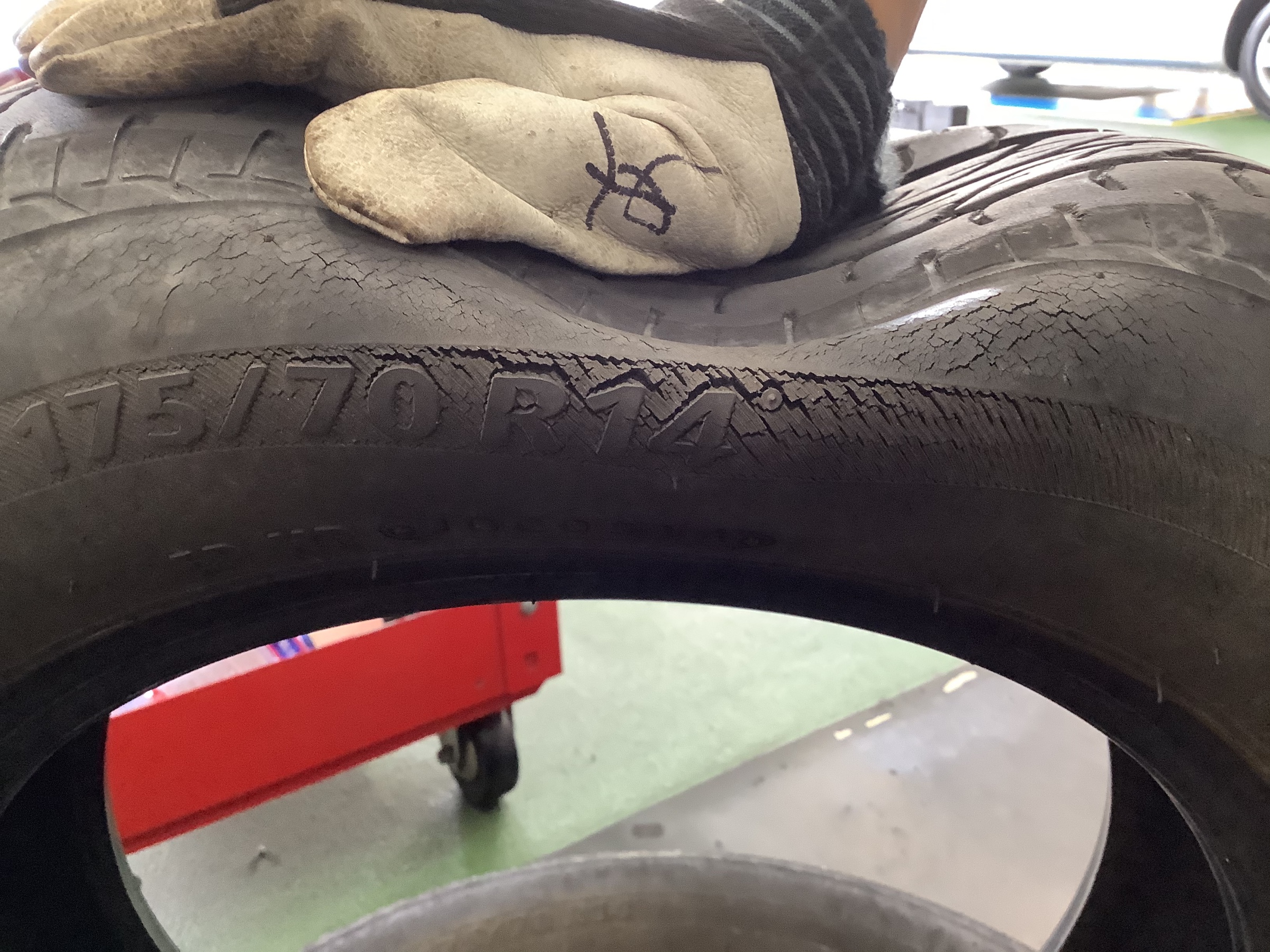 見るからに古いタイヤですよね