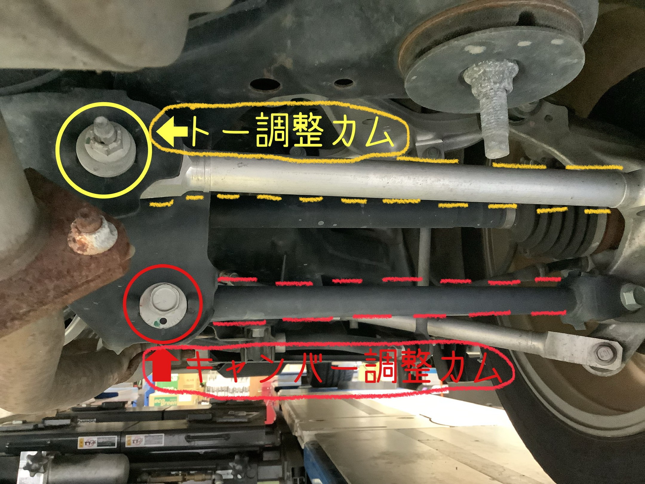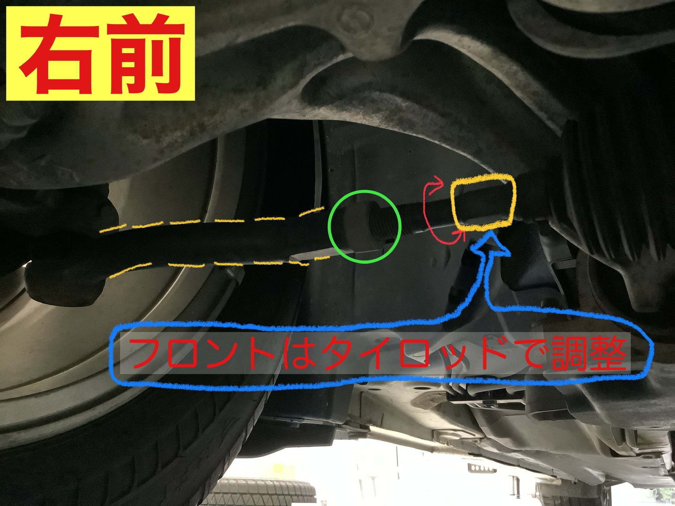 リヤのトーは「左が内側」、「右が外側」にずれています