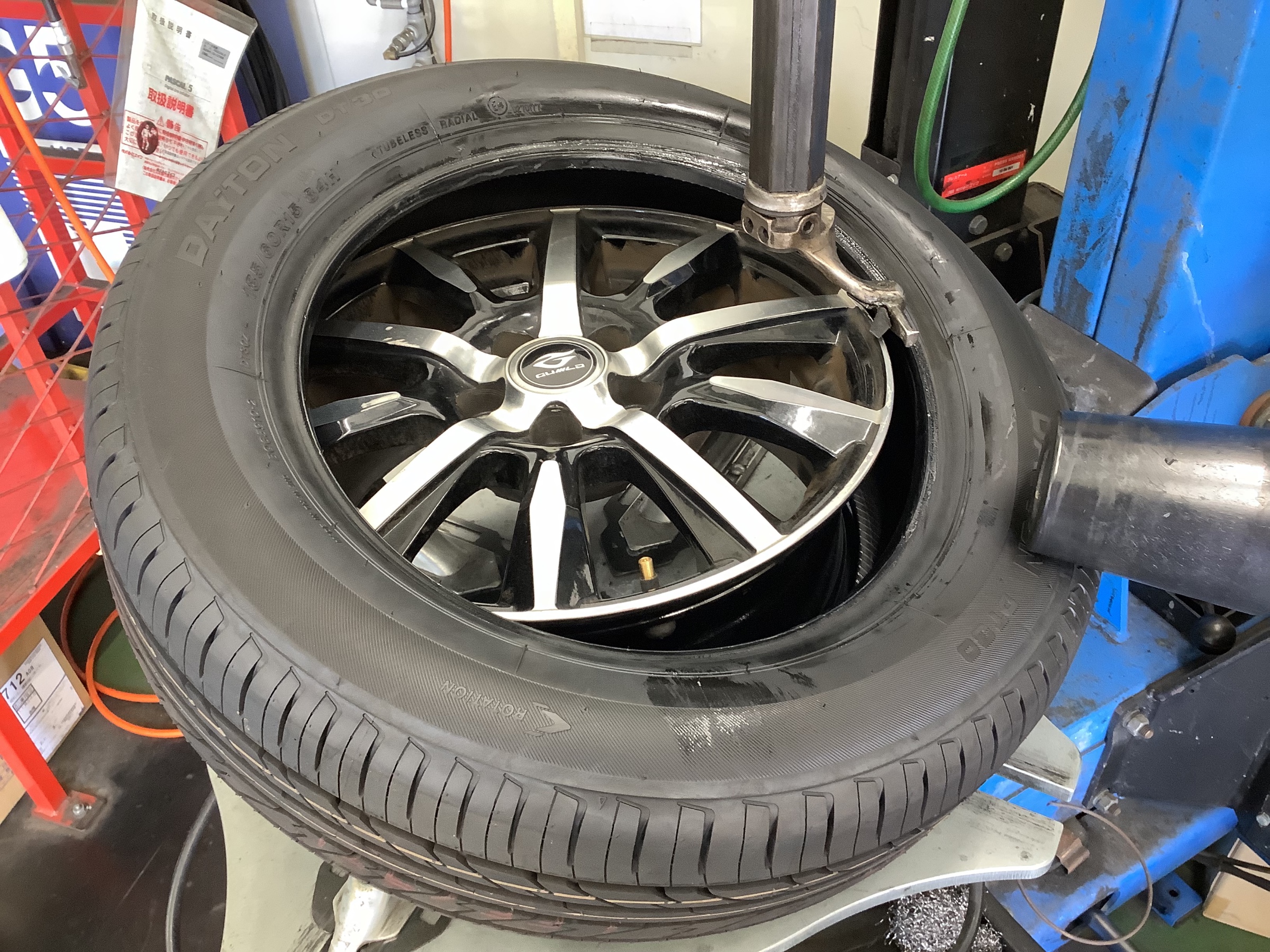 外したタイヤをホイールから外す作業です‼️ (● ˃̶͈̀ロ˂̶͈́)੭ꠥ⁾⁾