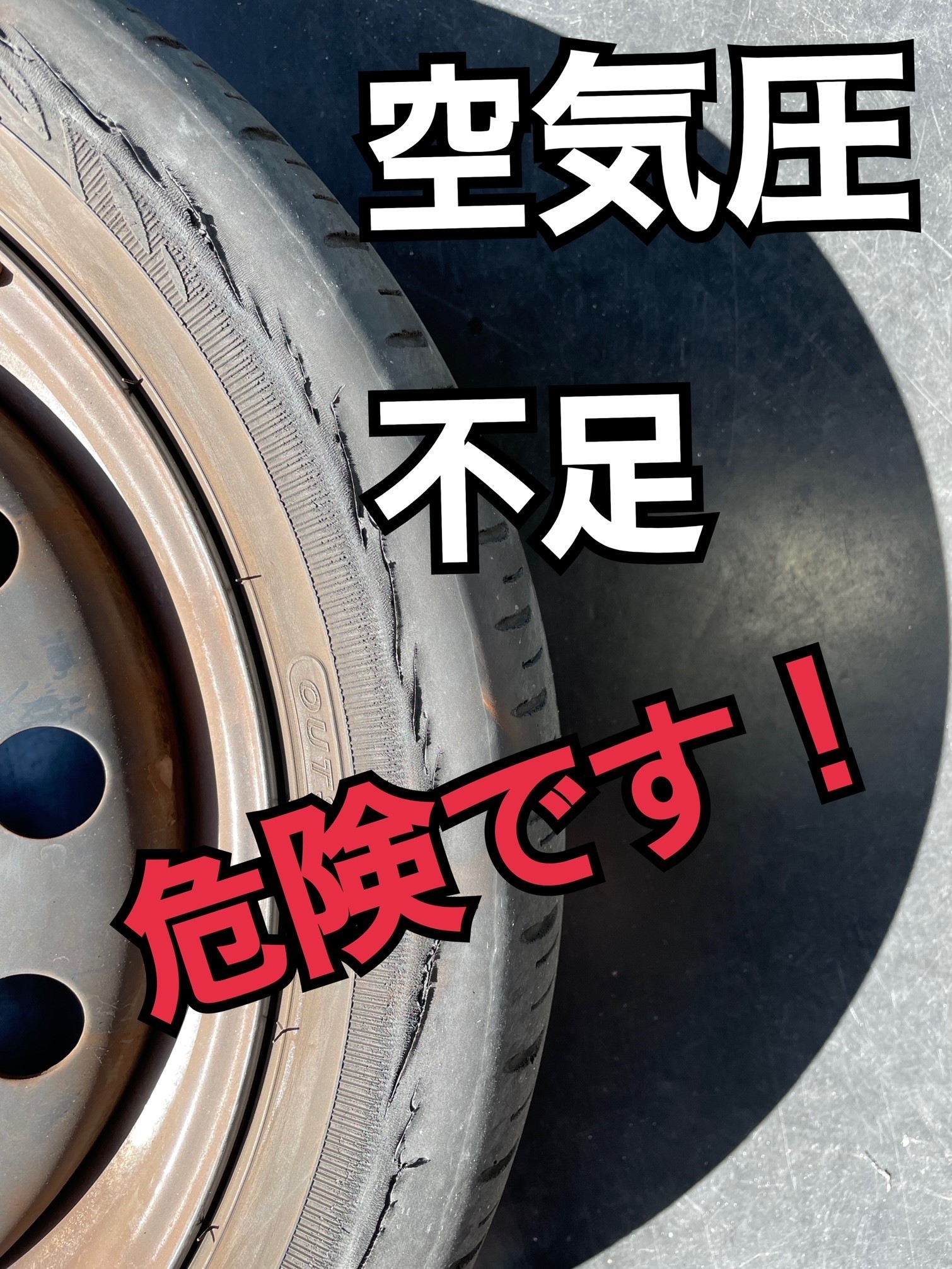空気圧不足はこのような事態に陥る可能性もありますので