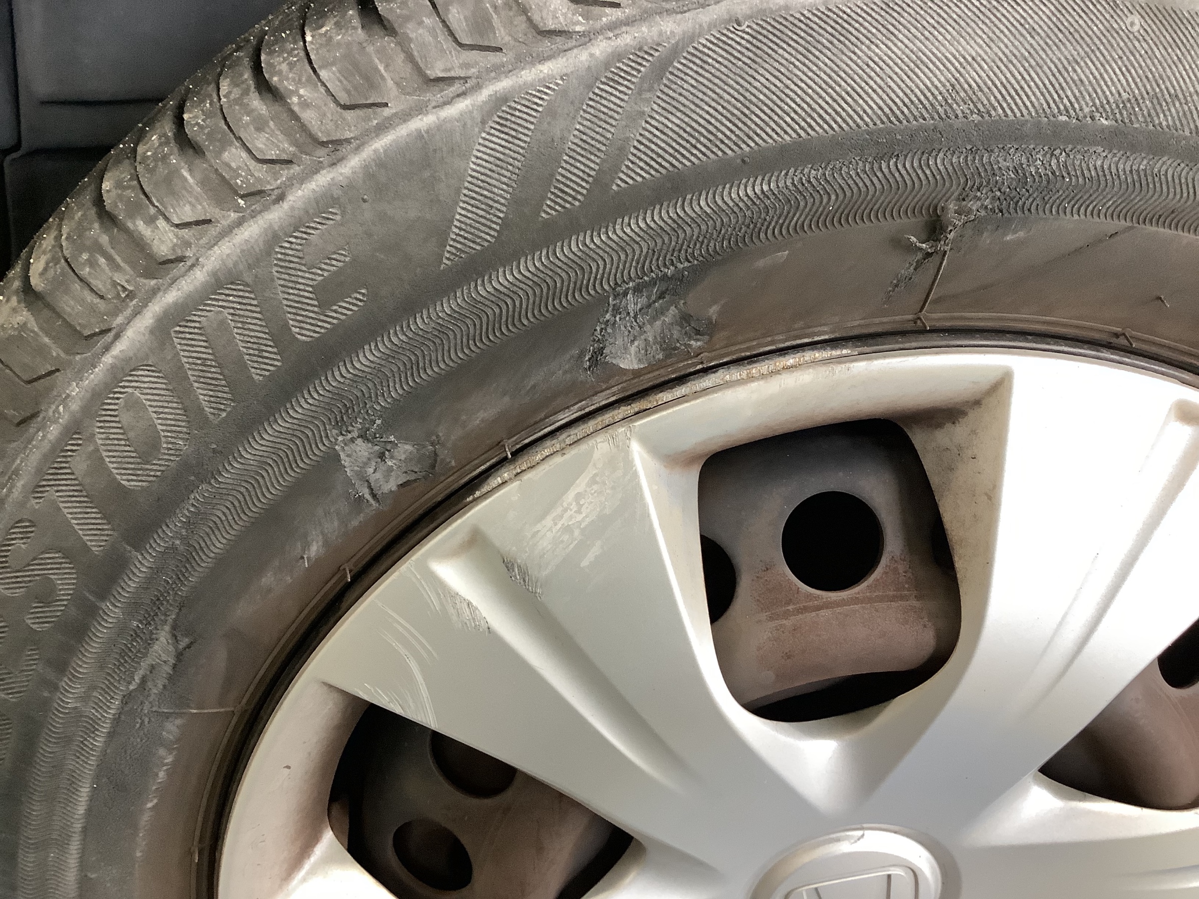 前回タイヤ交換の原因にもなったこの抉れた箇所があるタイヤ