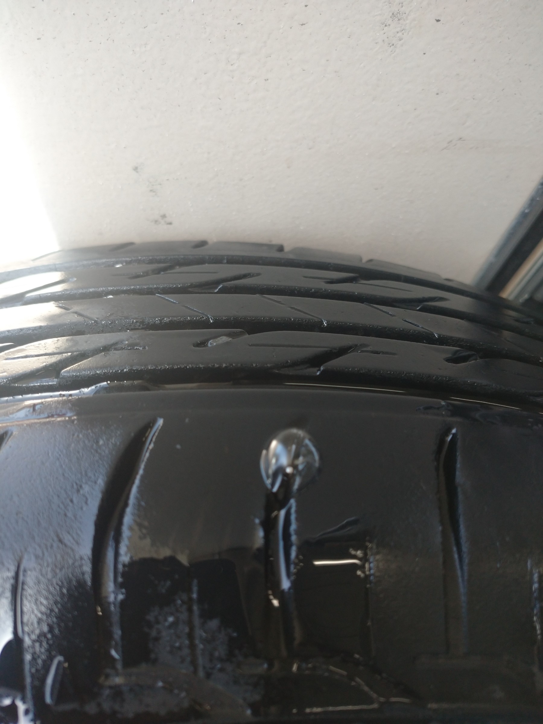 どうやら何かが刺さり、刺さった異物は抜けてしまった様です。しかも、漏れ出ている空気も本当に少量で、パンクしている事に中々気付きにくい状態でしたが、こちらのお客様はいつもこまめに空気圧を点検されていたために異変に気付かれました。