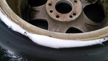 結果写真のように、タイヤと接する部分から、空気漏れが発生することがございます。