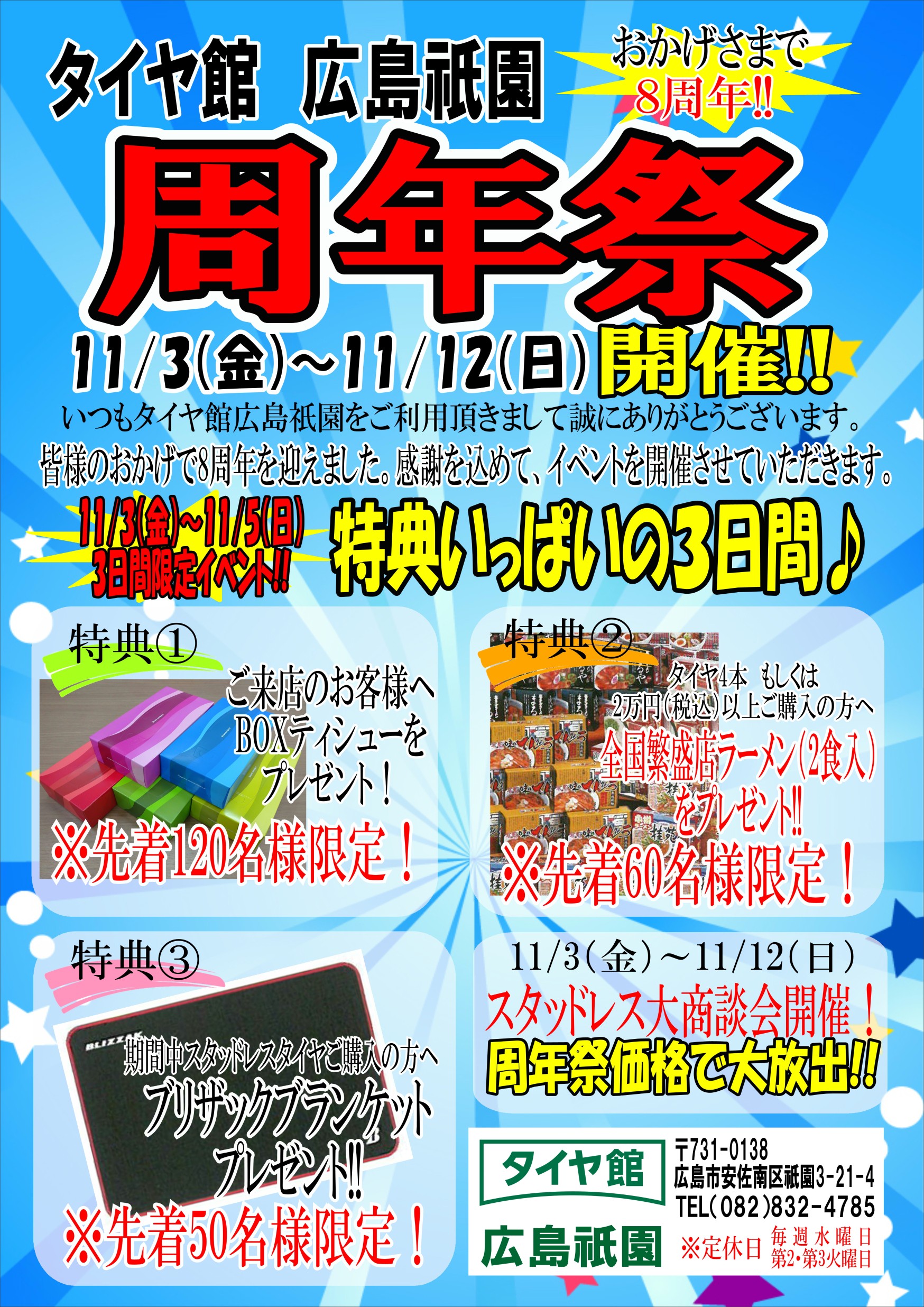 ②タイヤ4本もしくは2万円ご購入の方※全員にラーメンをプレゼントします!