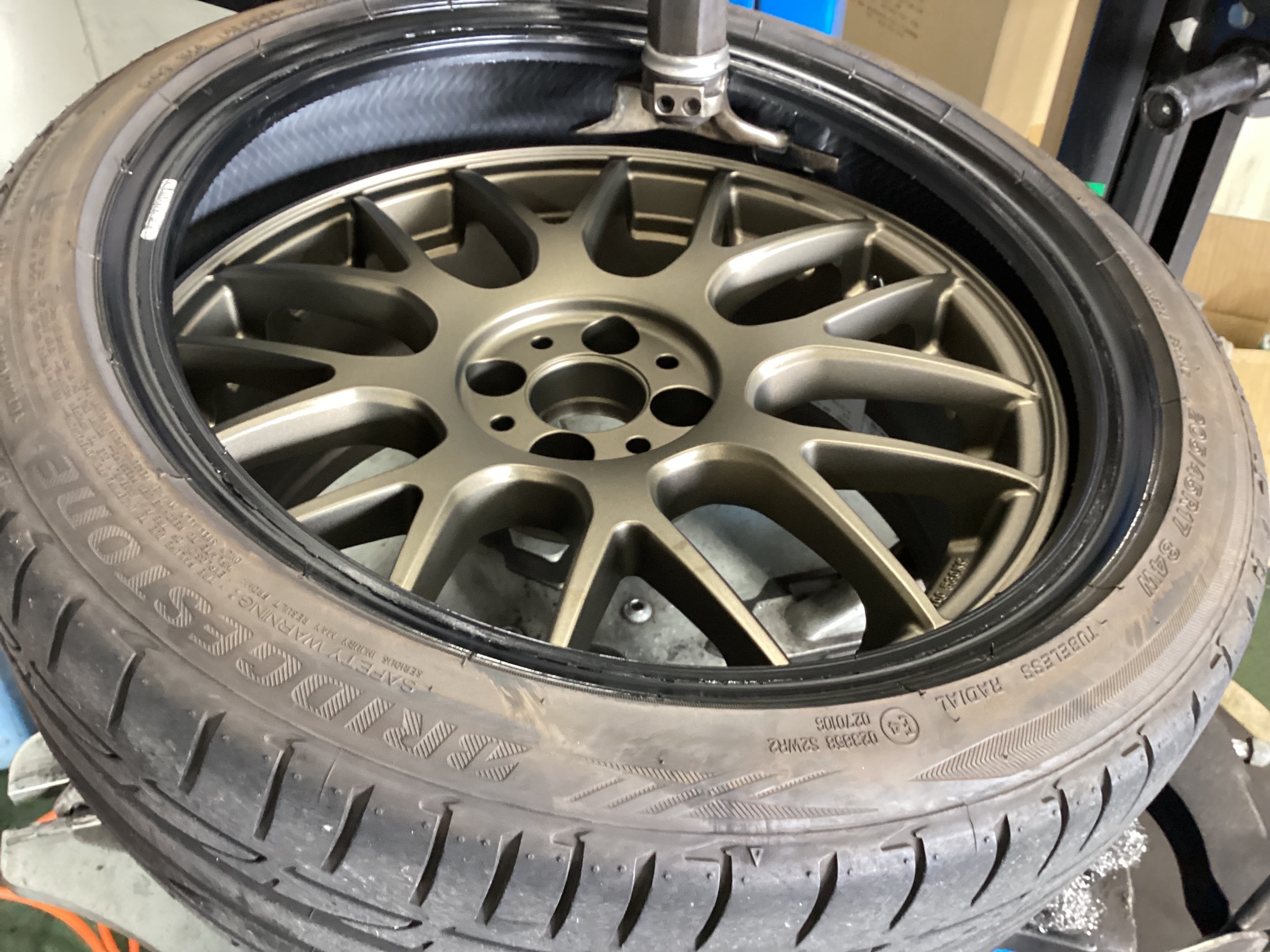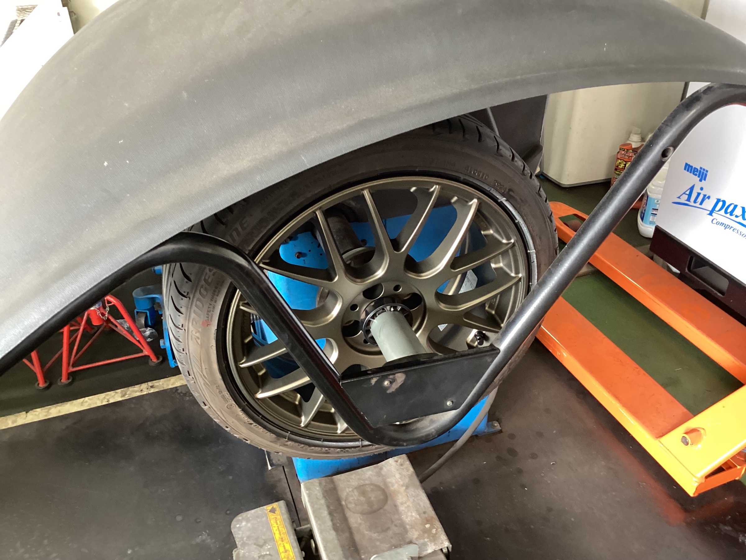 タイヤホイールのバランス調整を行います。
