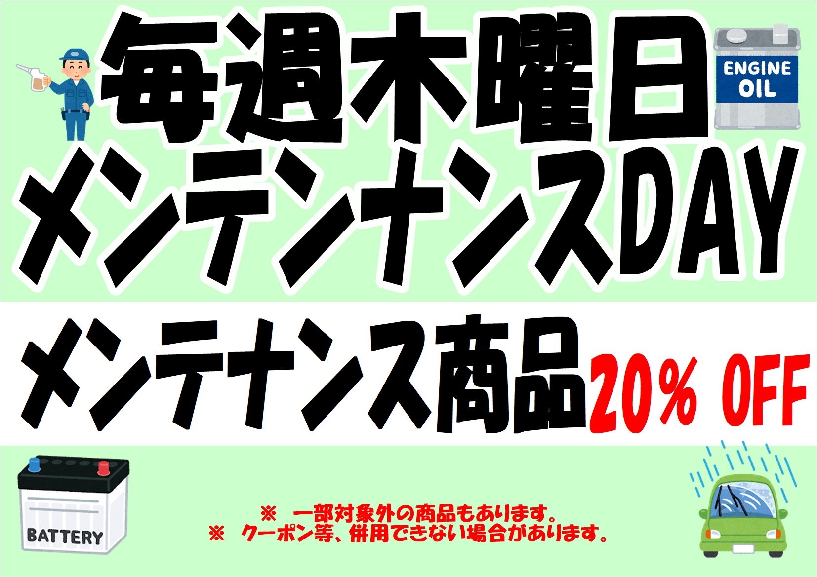 (オイル交換、バッテリー、ワイパー、エアコンフィルター)