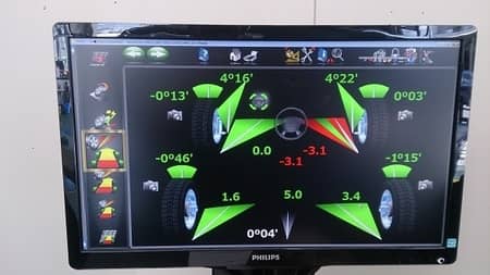 アライメントはセンサーにかけて測定しますと、右前がややトゥアウトです。