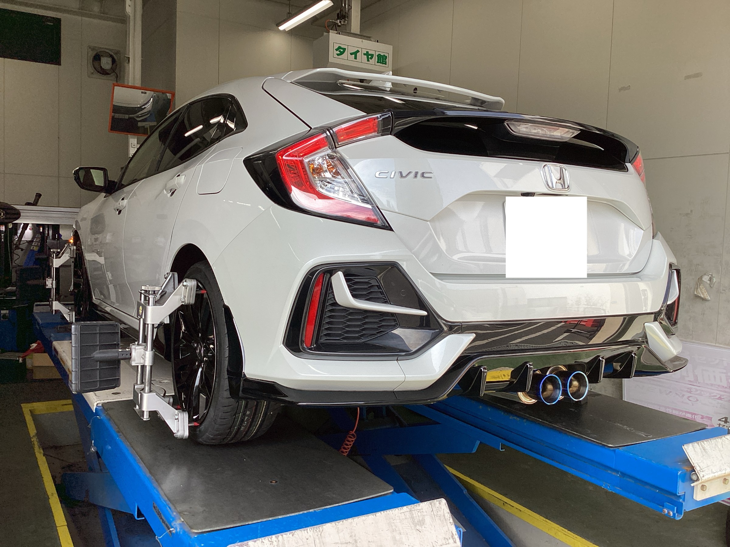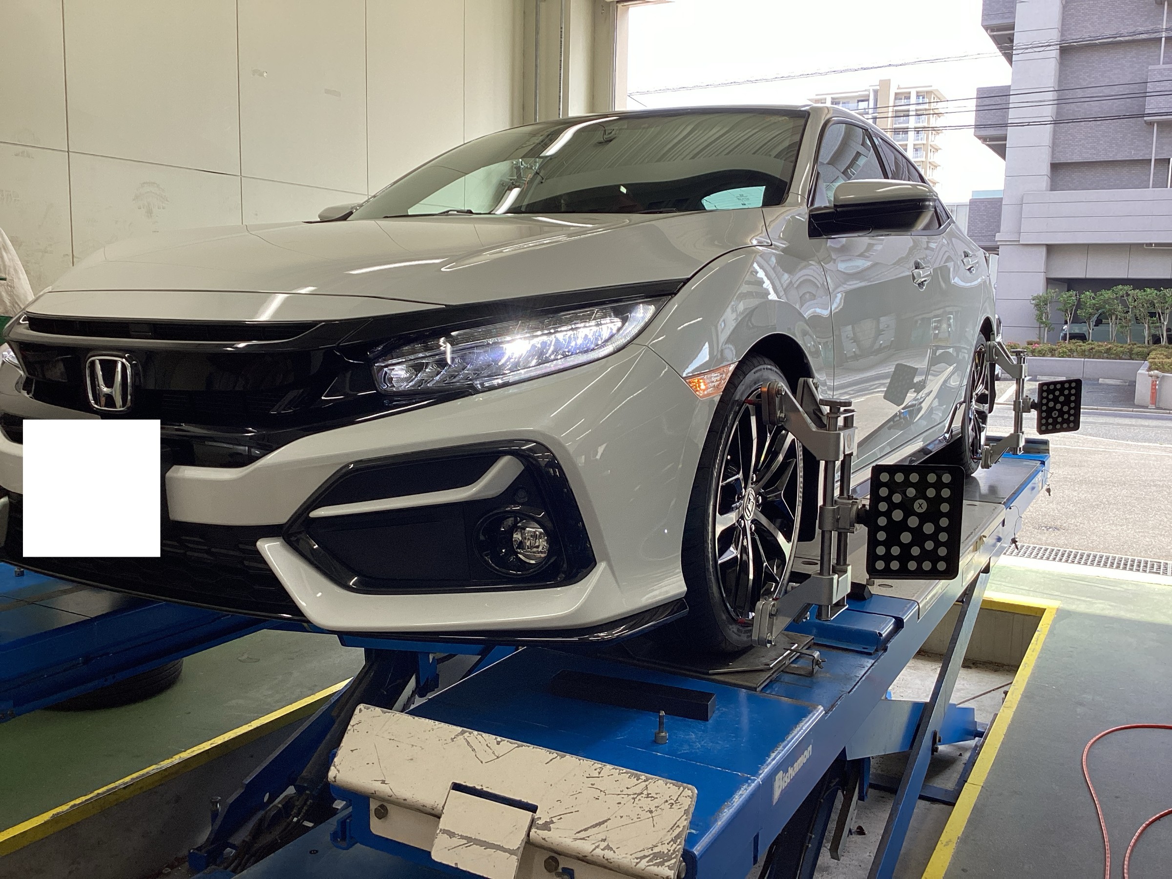 タイヤ交換が完了し、次は車の骨盤矯正「アライメント」の測定をしていきます。