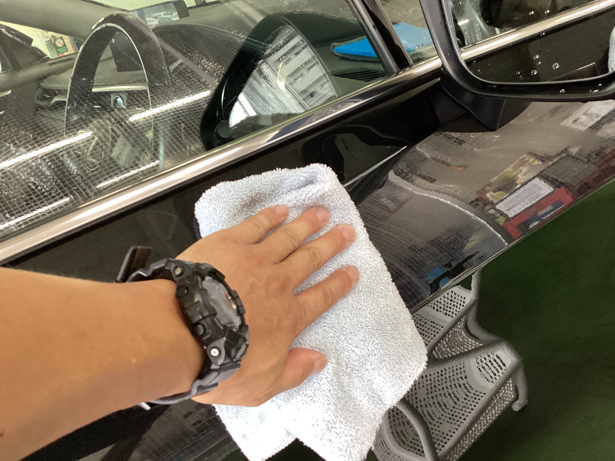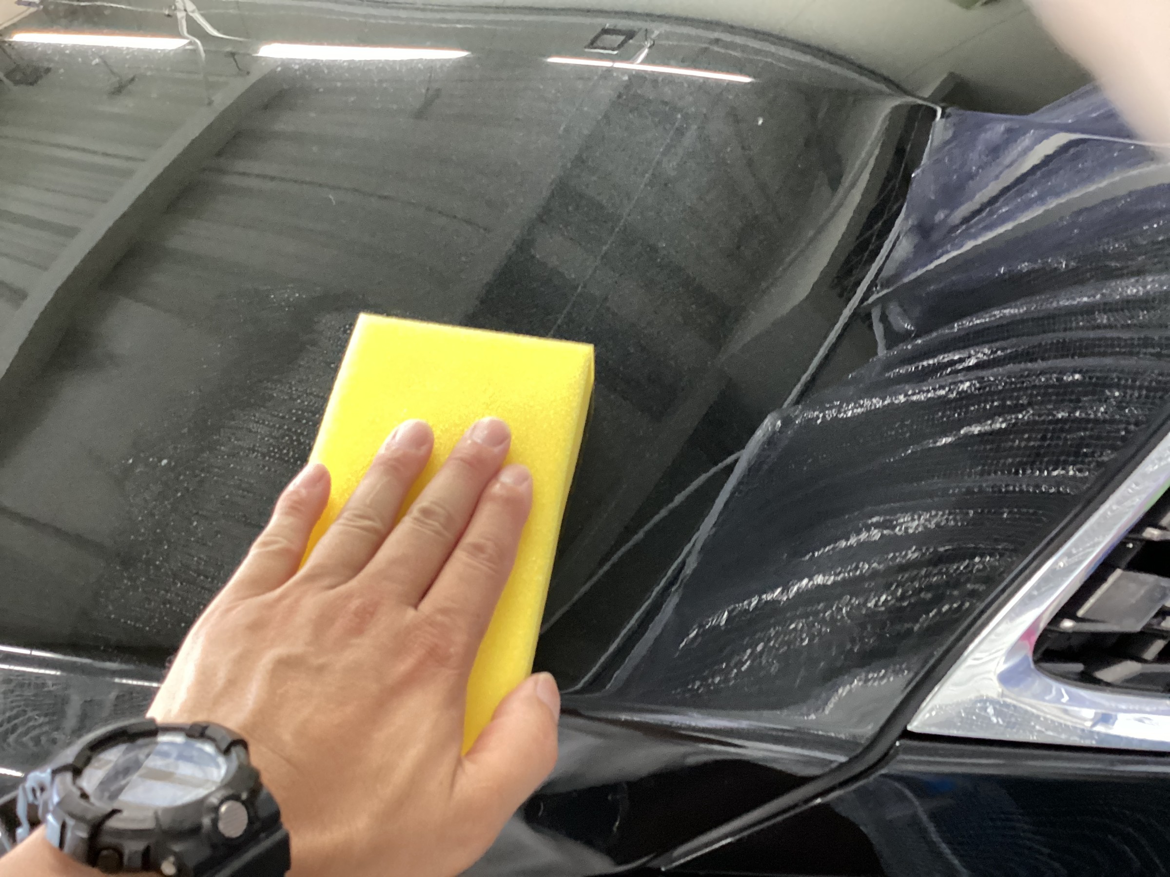 丁寧に、ガラスコートと防汚能力の高いトップコートを施工していきます。