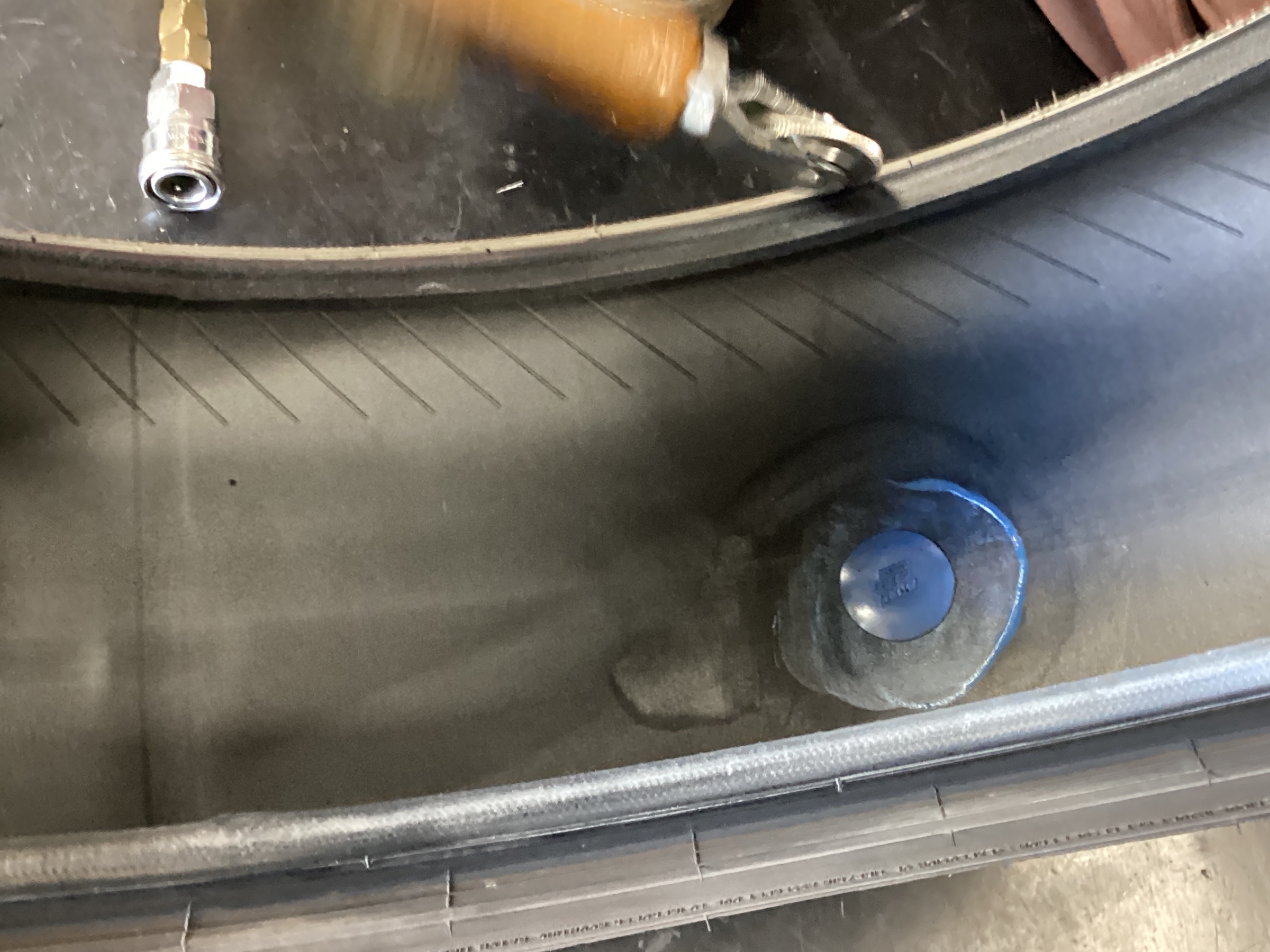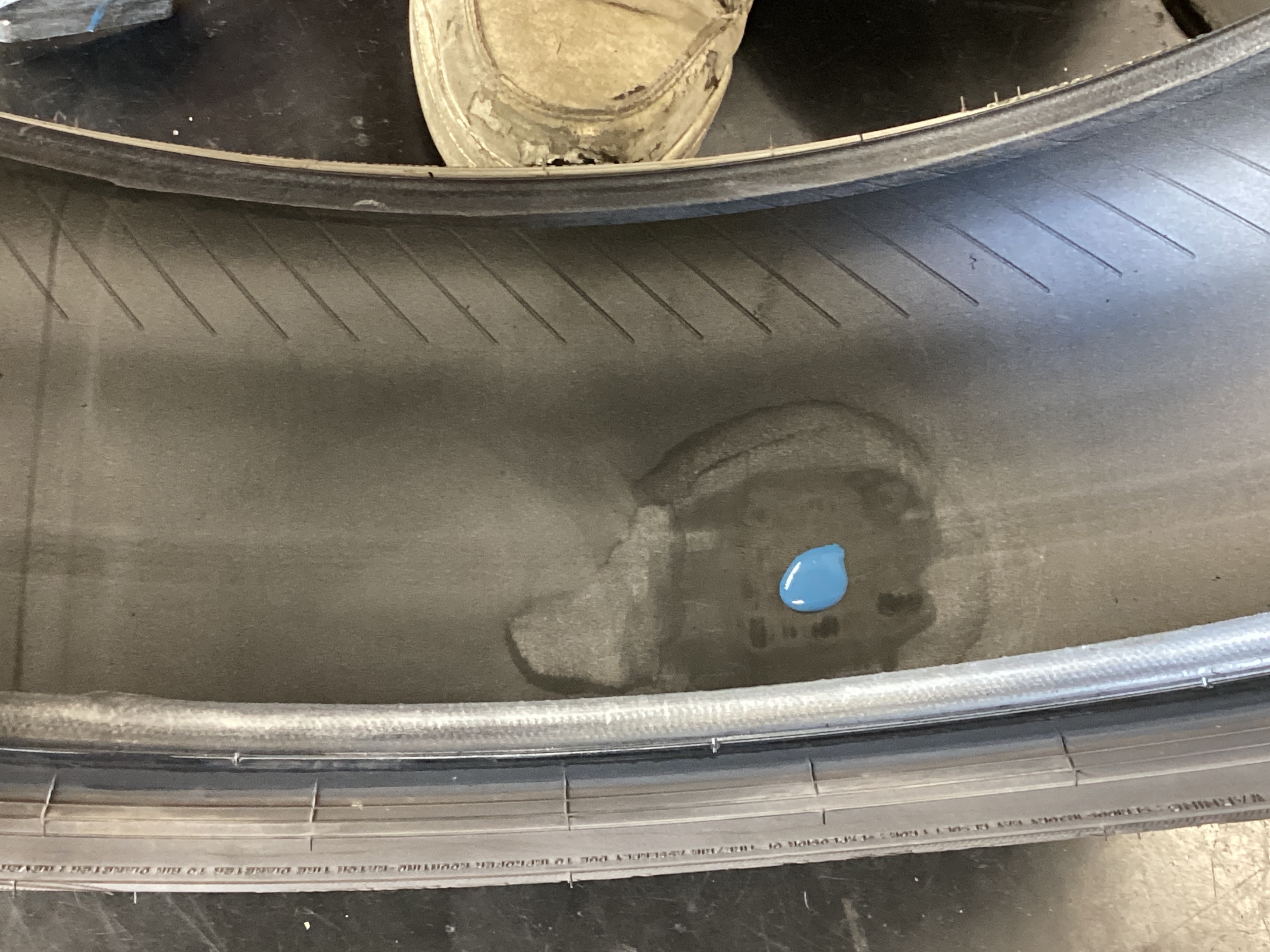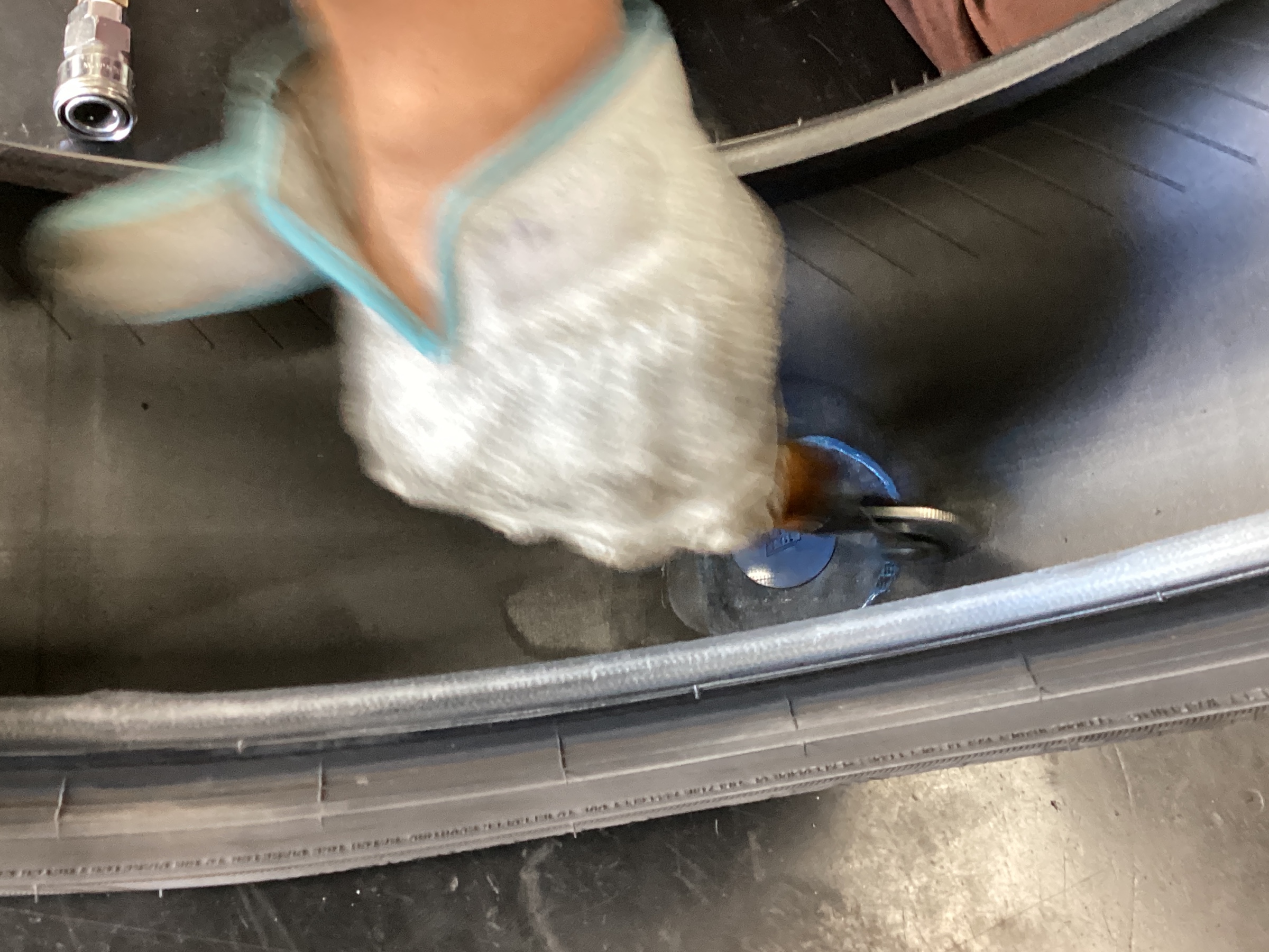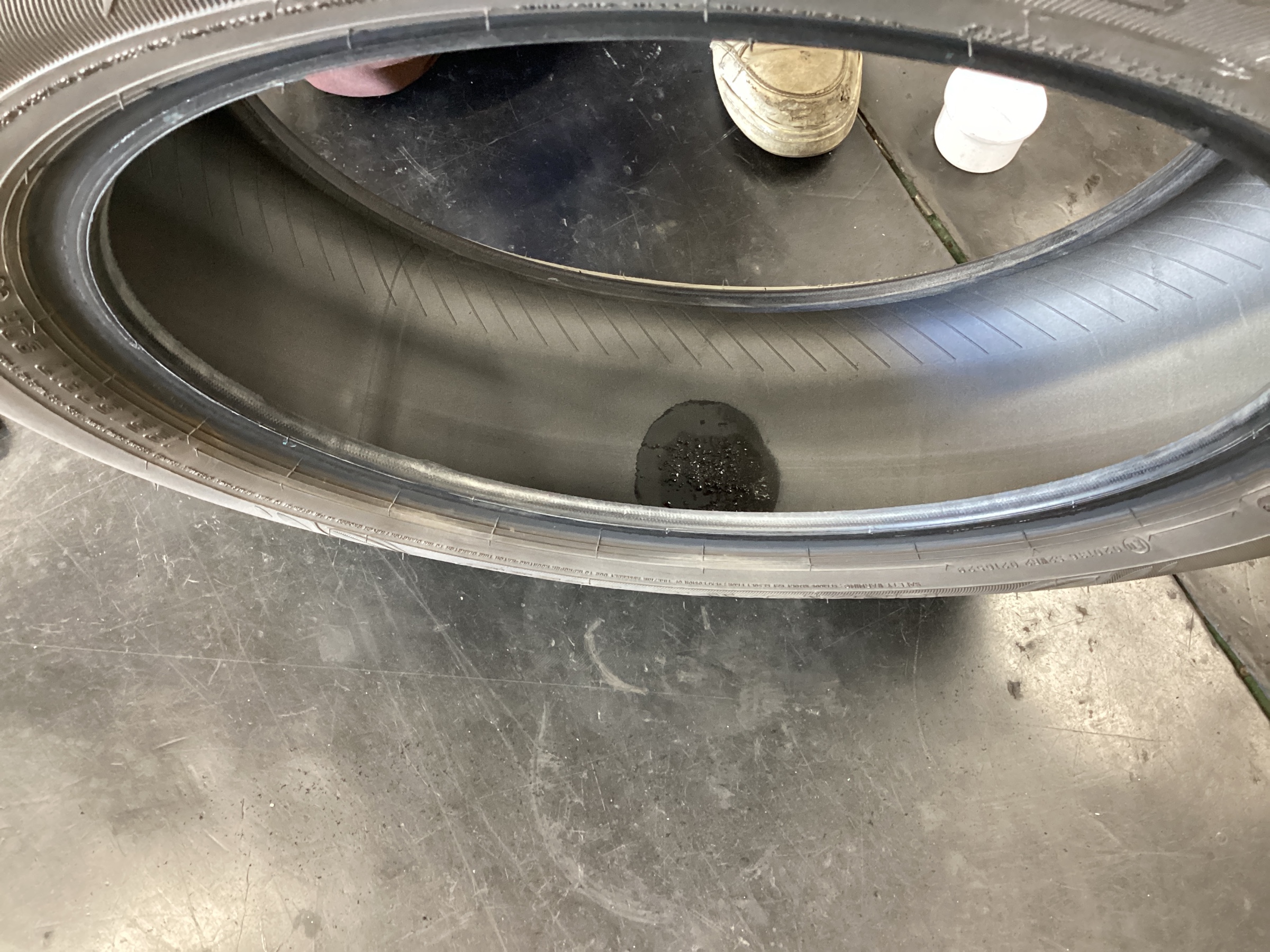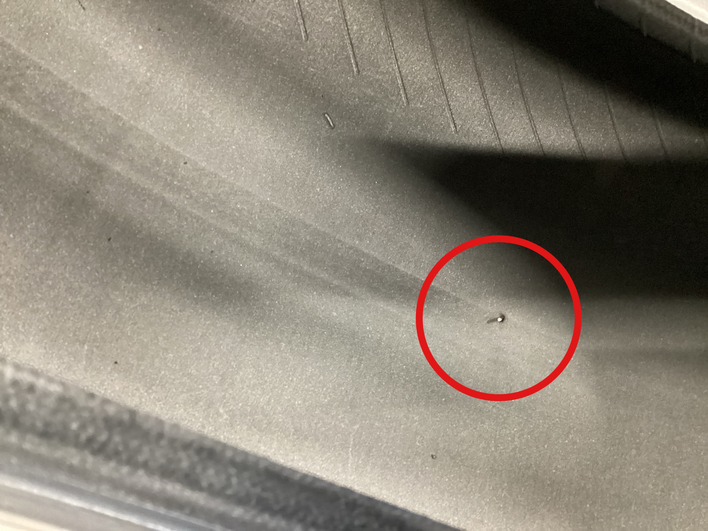 修理剤を張り付けるためにインナーライナーという、空気を抜けにくくするための層を削っていきます。