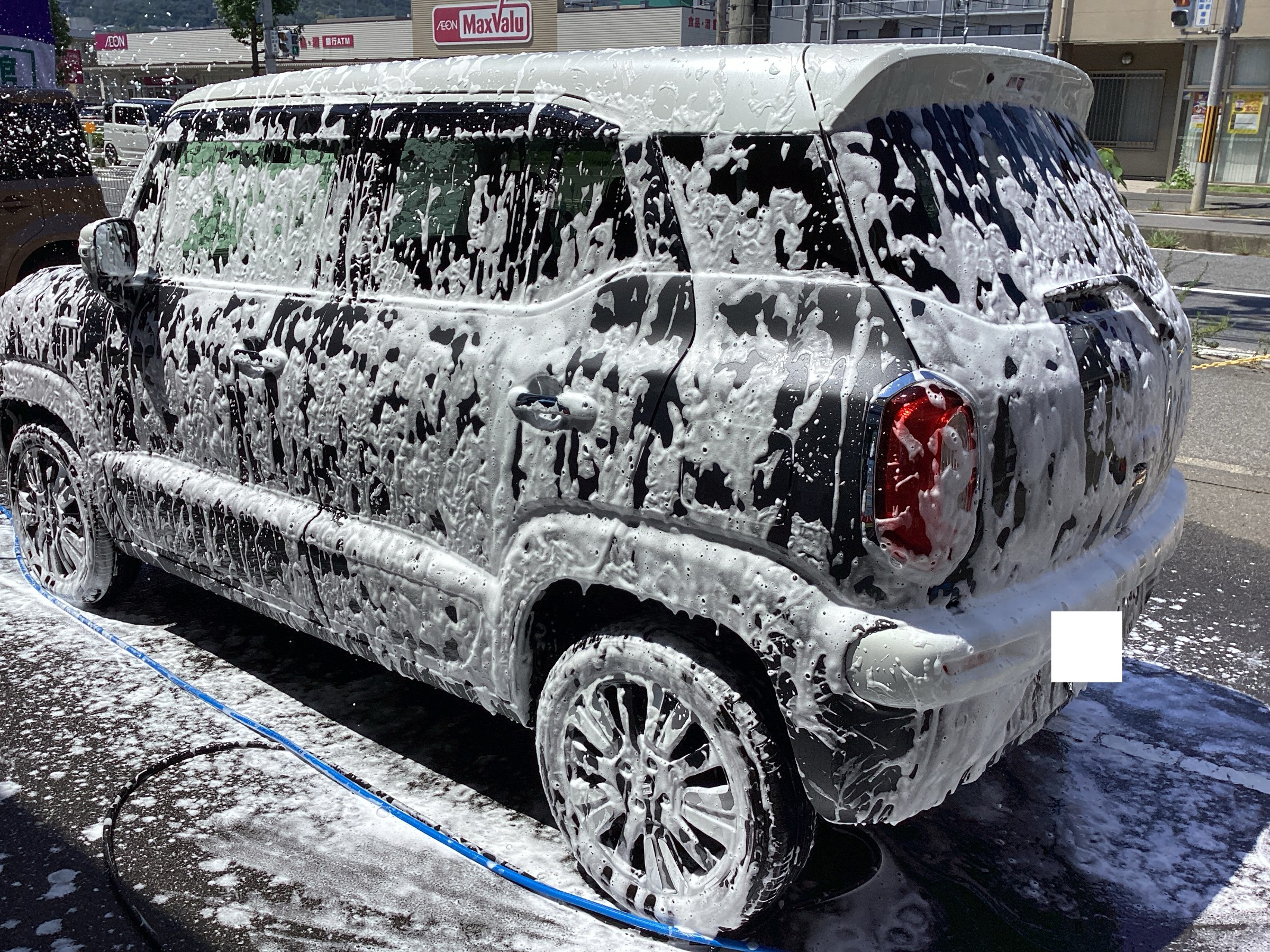 この後、もう一度ムース洗車をして、ボディー全体に純水(ミネラルなどの不純物を含まない純度の高い水)をかけたらコーティングの工程です。