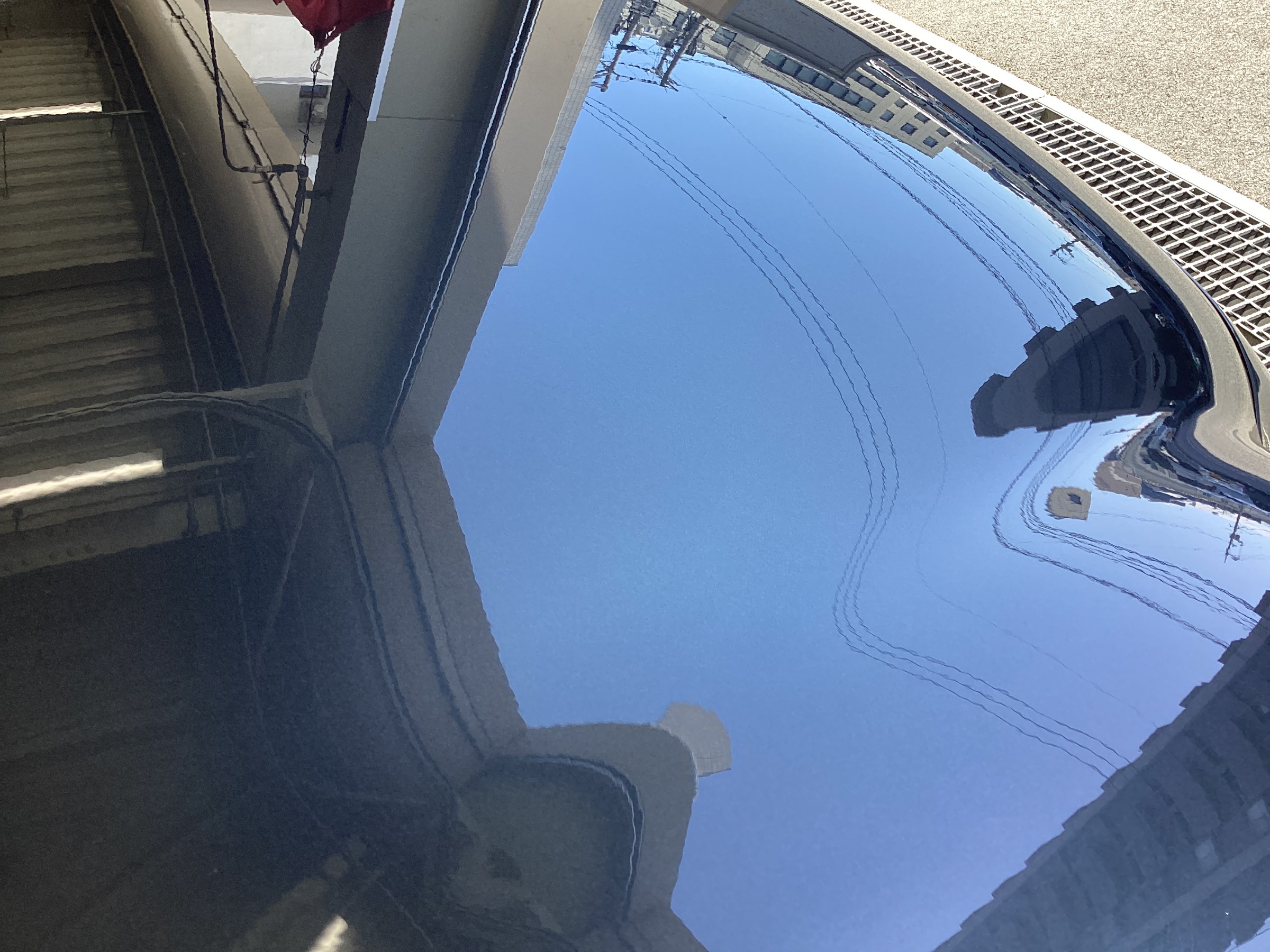 ツヤツヤになり、景色がくっきり映り込んでますね!