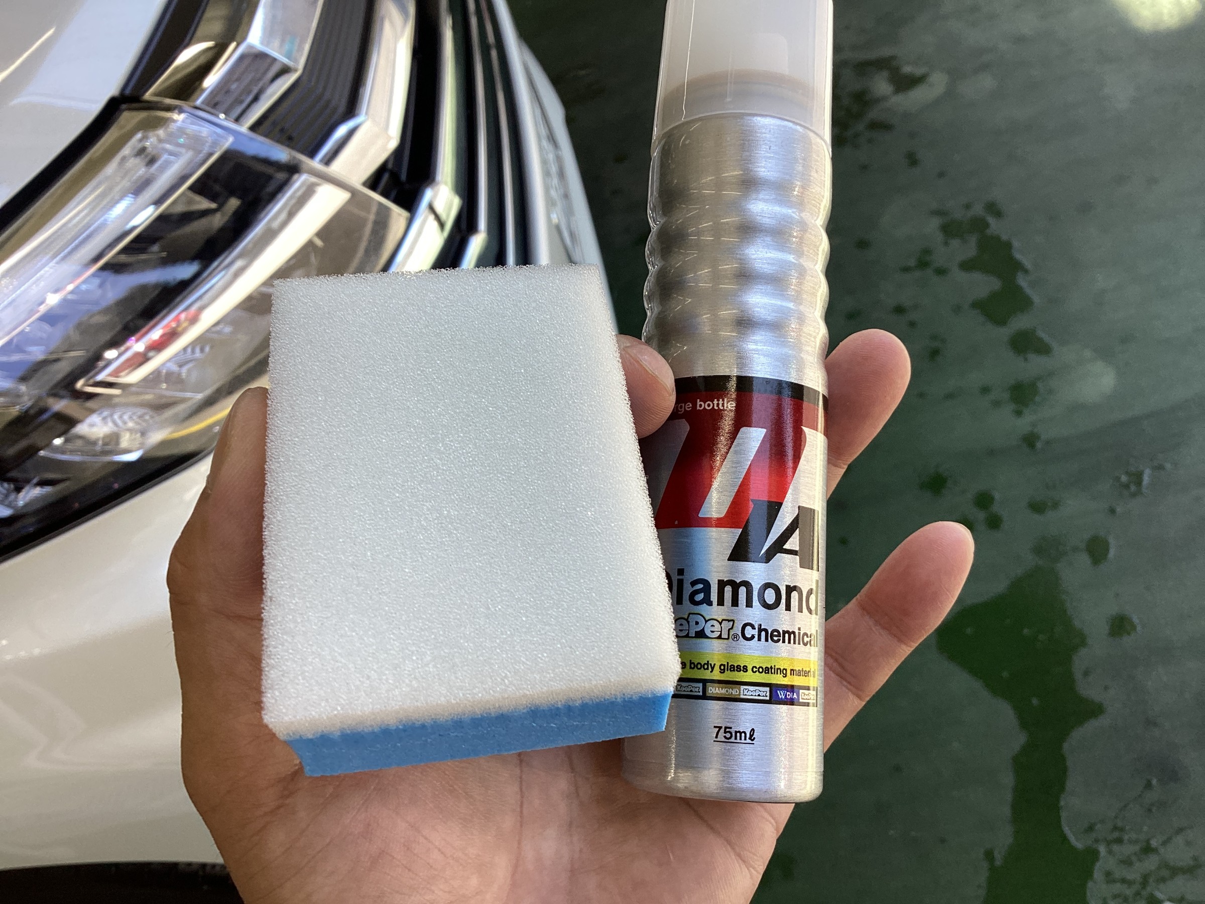 施工には、専用のケミカルと専用のスポンジ、クロスを使用します。